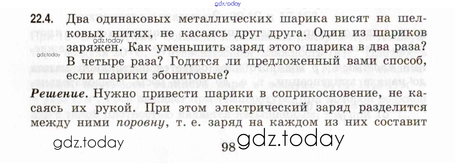 На страницах сайта gdz.today вы найдете учебный и вспомогательный материал, направленный на улучшения знаний школьной программы. ГДЗ - онлайн мир знаний Решение к теме 22. Электризация тел. Строение атома. Электрическое поле 22.4 Задачнику по Физике для 7-9 класса Генденштейн, Кирик Илекса 2020