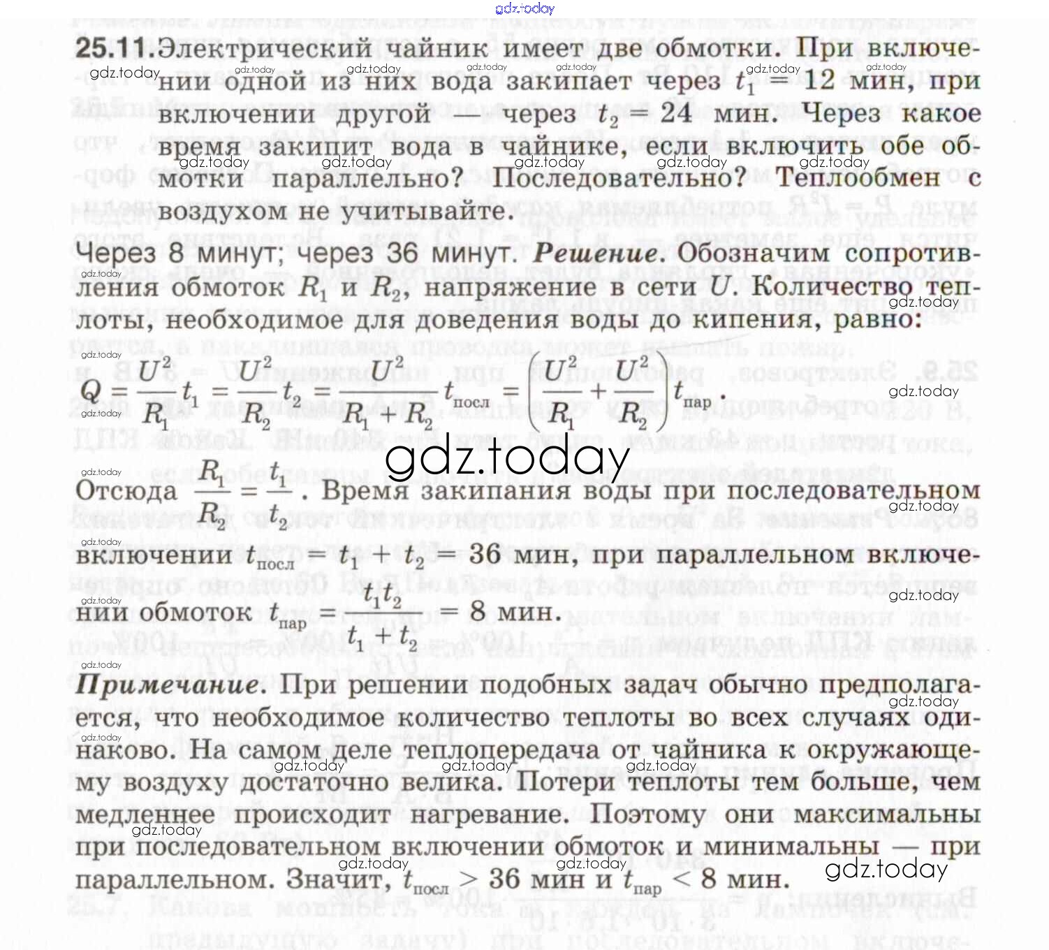 Ответы к Решение к теме 25. Работа и мощность электрического тока. Закон Джоуля - Ленца 25.11 Задачнику по Физике для 7-9 класса Генденштейн, Кирик Илекса 2020