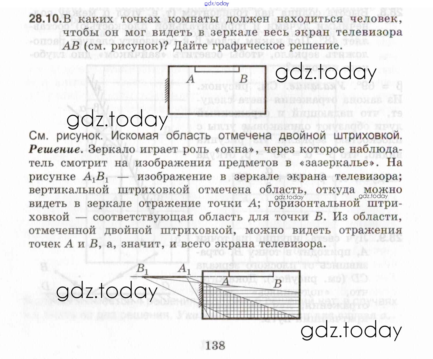 На страницах сайта gdz.today вы найдете учебный и вспомогательный материал, направленный на улучшения знаний школьной программы. ГДЗ - онлайн мир знаний Решение к теме 28. Отражение света. Изображение в плоском зеркале 28.10 Задачнику по Физике для 7-9 класса Генденштейн, Кирик Илекса 2020
