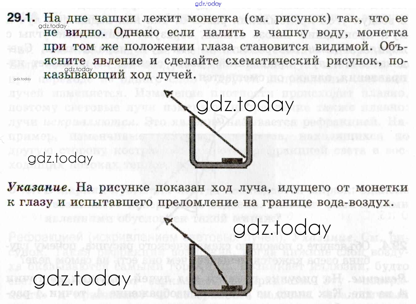 На страницах сайта gdz.today вы найдете учебный и вспомогательный материал, направленный на улучшения знаний школьной программы. ГДЗ - онлайн мир знаний Решение к теме 29. Преломление света 29.1 Задачнику по Физике для 7-9 класса Генденштейн, Кирик Илекса 2020