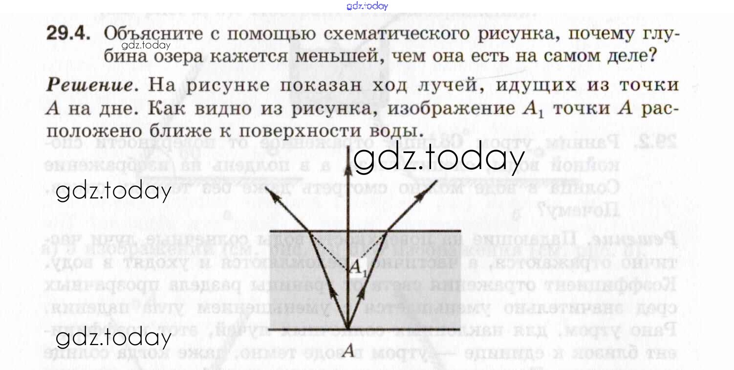 На страницах сайта gdz.today вы найдете учебный и вспомогательный материал, направленный на улучшения знаний школьной программы. ГДЗ - онлайн мир знаний Решение к теме 29. Преломление света 29.4 Задачнику по Физике для 7-9 класса Генденштейн, Кирик Илекса 2020