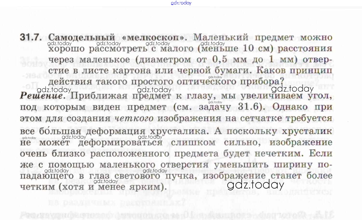 На страницах сайта gdz.today вы найдете учебный и вспомогательный материал, направленный на улучшения знаний школьной программы. ГДЗ - онлайн мир знаний Решение к теме 31. Оптические приборы 31.7 Задачнику по Физике для 7-9 класса Генденштейн, Кирик Илекса 2020