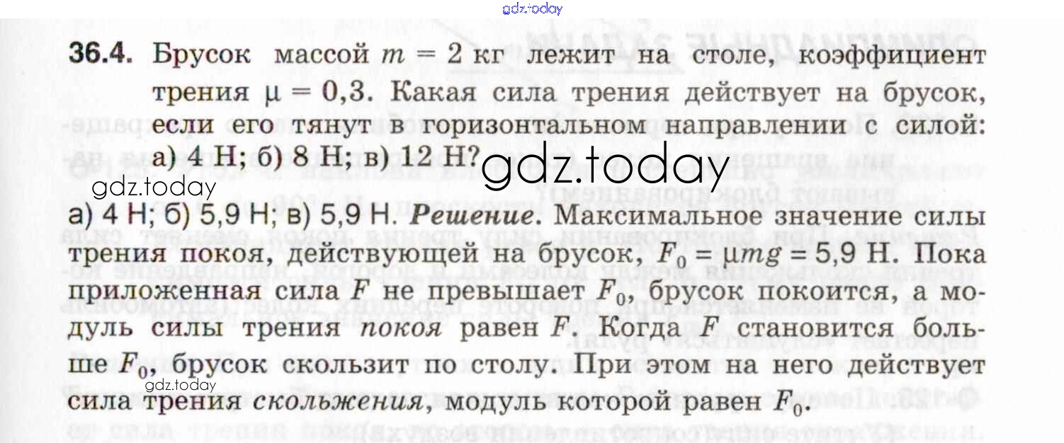 На страницах сайта gdz.today вы найдете учебный и вспомогательный материал, направленный на улучшения знаний школьной программы. ГДЗ - онлайн мир знаний Решение к теме 36. Сила упругости. Сила трения 36.4 Задачнику по Физике для 7-9 класса Генденштейн, Кирик Илекса 2020