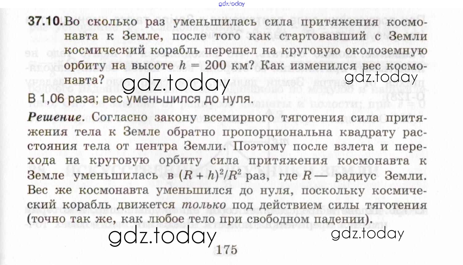 Ответы к Решение к теме 37. Закон всемирного тяготения. Сила тяжести и вес тела 37.10 Задачнику по Физике для 7-9 класса Генденштейн, Кирик Илекса 2020