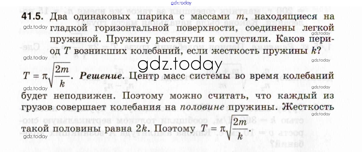 На страницах сайта gdz.today вы найдете учебный и вспомогательный материал, направленный на улучшения знаний школьной программы. ГДЗ - онлайн мир знаний Решение к теме 41. Механические колебания 41.5 Задачнику по Физике для 7-9 класса Генденштейн, Кирик Илекса 2020