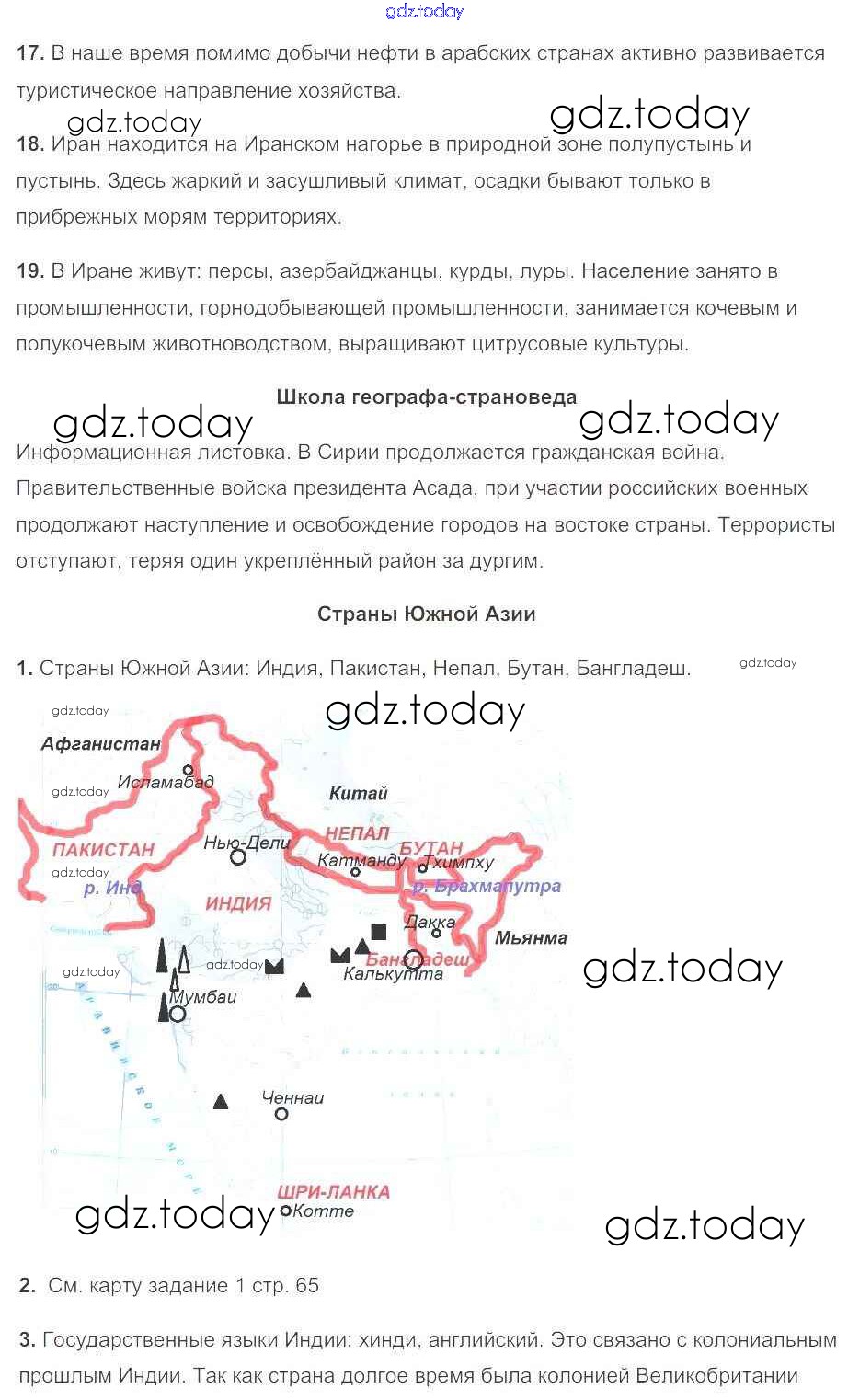 На страницах сайта gdz.today вы найдете учебный и вспомогательный материал, направленный на улучшения знаний школьной программы. ГДЗ - онлайн мир знаний Решение к части 1. Страницы 65 Рабочей тетради по Географии для 7 класса Душина Вентана-граф Алгоритм успеха 2017