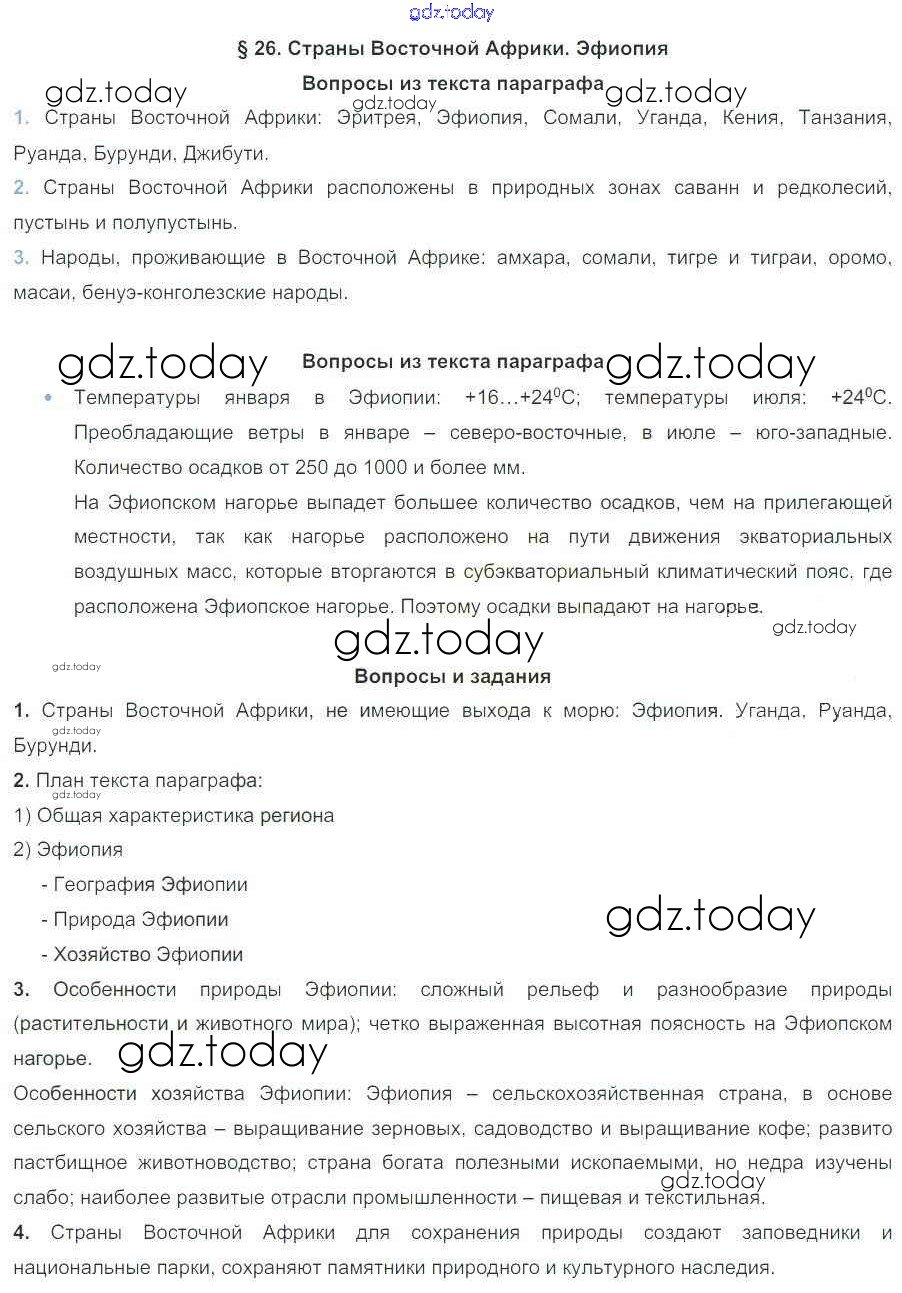 На страницах сайта gdz.today вы найдете учебный и вспомогательный материал, направленный на улучшения знаний школьной программы. ГДЗ - онлайн мир знаний Решение к параграфам 26 Учебнику по Географии для 7 класса Коринская, Душина Дрофа 2017