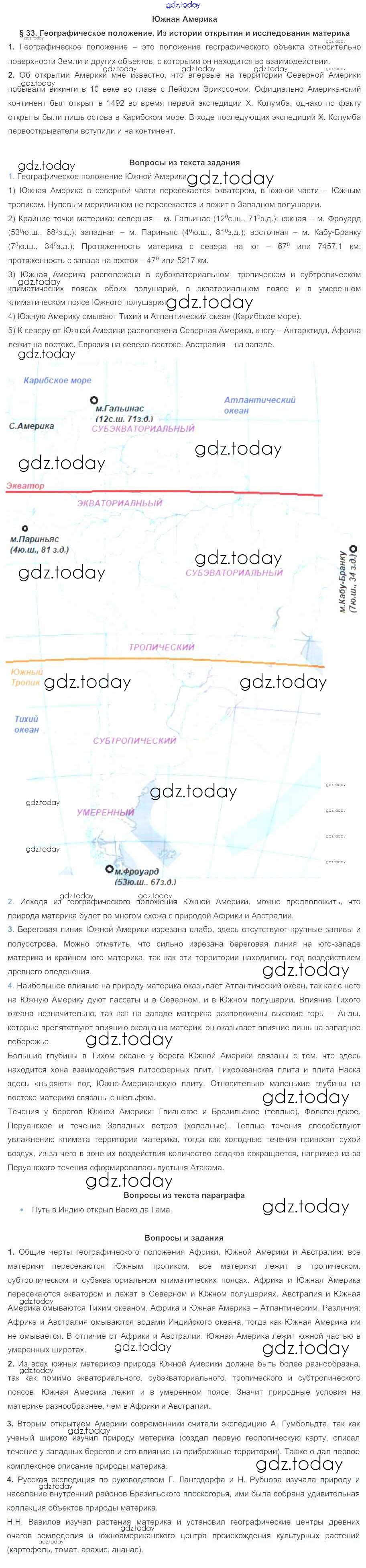 На страницах сайта gdz.today вы найдете учебный и вспомогательный материал, направленный на улучшения знаний школьной программы. ГДЗ - онлайн мир знаний Решение к параграфам 33 Учебнику по Географии для 7 класса Коринская, Душина Дрофа 2017