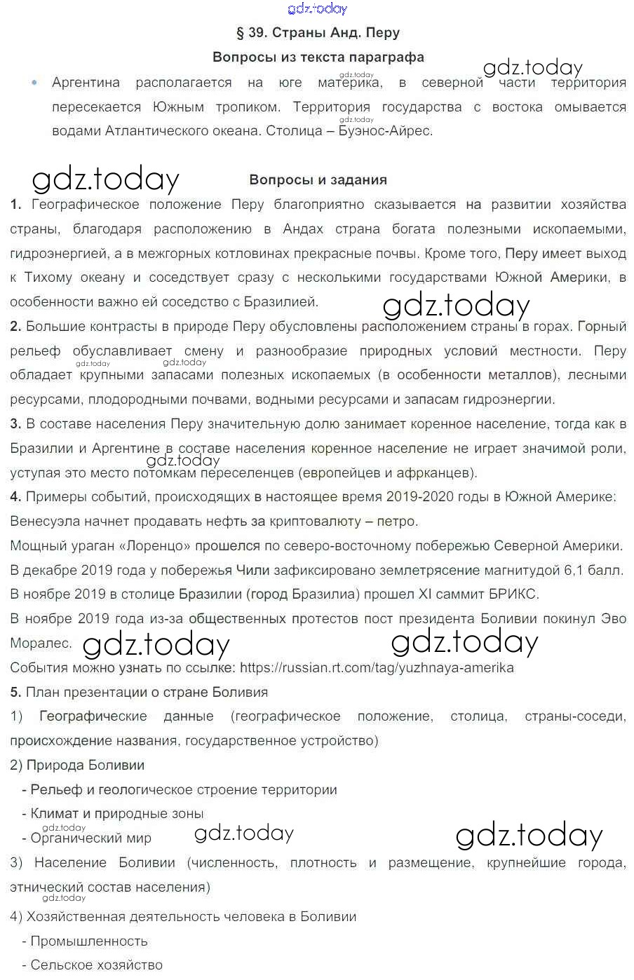 На страницах сайта gdz.today вы найдете учебный и вспомогательный материал, направленный на улучшения знаний школьной программы. ГДЗ - онлайн мир знаний Решение к параграфам 39 Учебнику по Географии для 7 класса Коринская, Душина Дрофа 2017