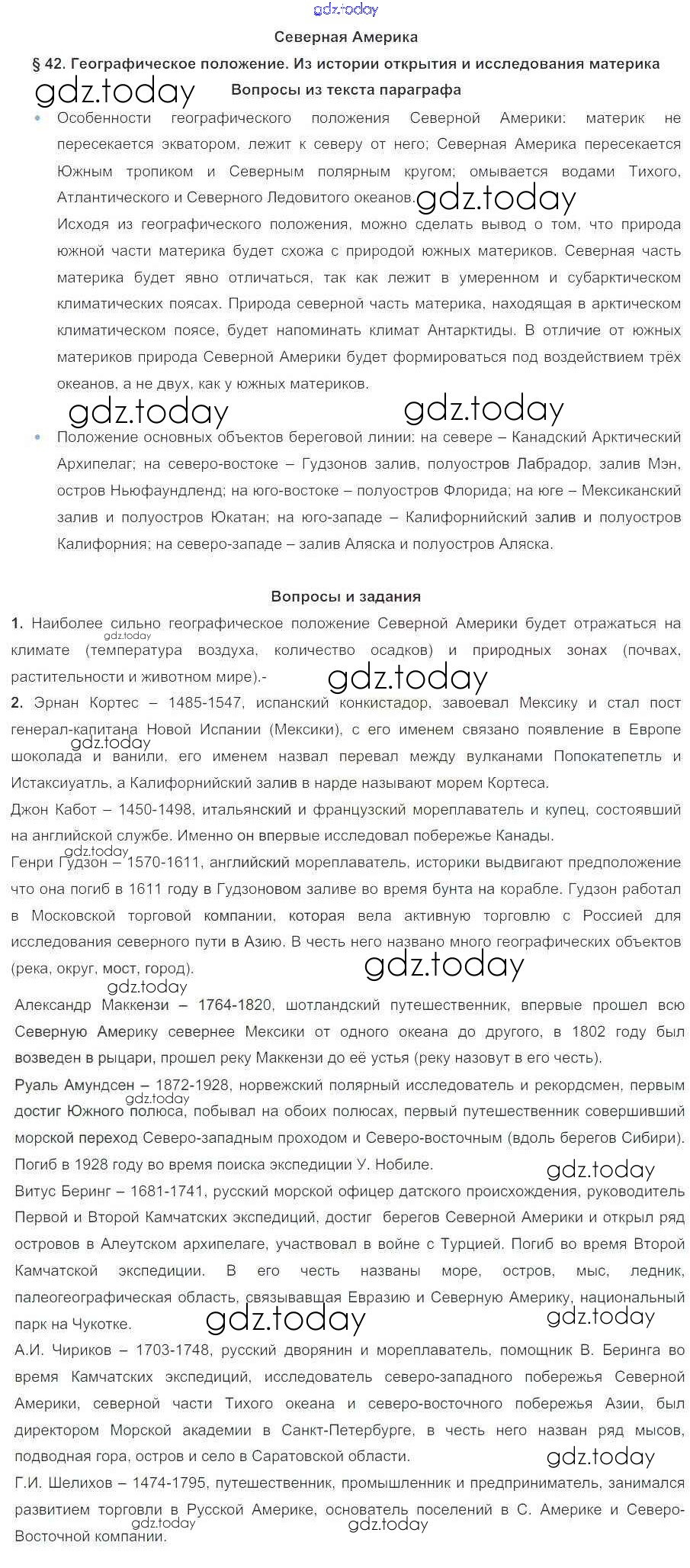 На страницах сайта gdz.today вы найдете учебный и вспомогательный материал, направленный на улучшения знаний школьной программы. ГДЗ - онлайн мир знаний Решение к параграфам 42 Учебнику по Географии для 7 класса Коринская, Душина Дрофа 2017