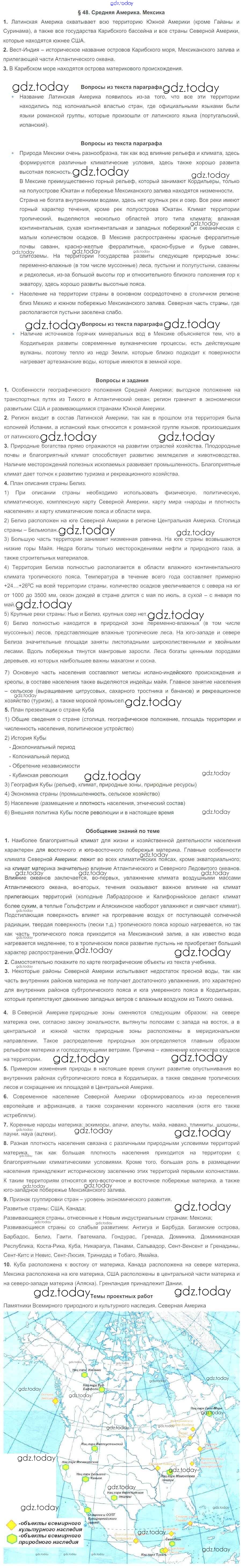 На страницах сайта gdz.today вы найдете учебный и вспомогательный материал, направленный на улучшения знаний школьной программы. ГДЗ - онлайн мир знаний Решение к параграфам 48 Учебнику по Географии для 7 класса Коринская, Душина Дрофа 2017