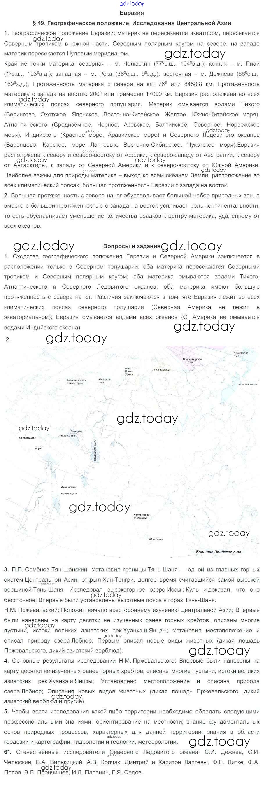 На страницах сайта gdz.today вы найдете учебный и вспомогательный материал, направленный на улучшения знаний школьной программы. ГДЗ - онлайн мир знаний Решение к параграфам 49 Учебнику по Географии для 7 класса Коринская, Душина Дрофа 2017