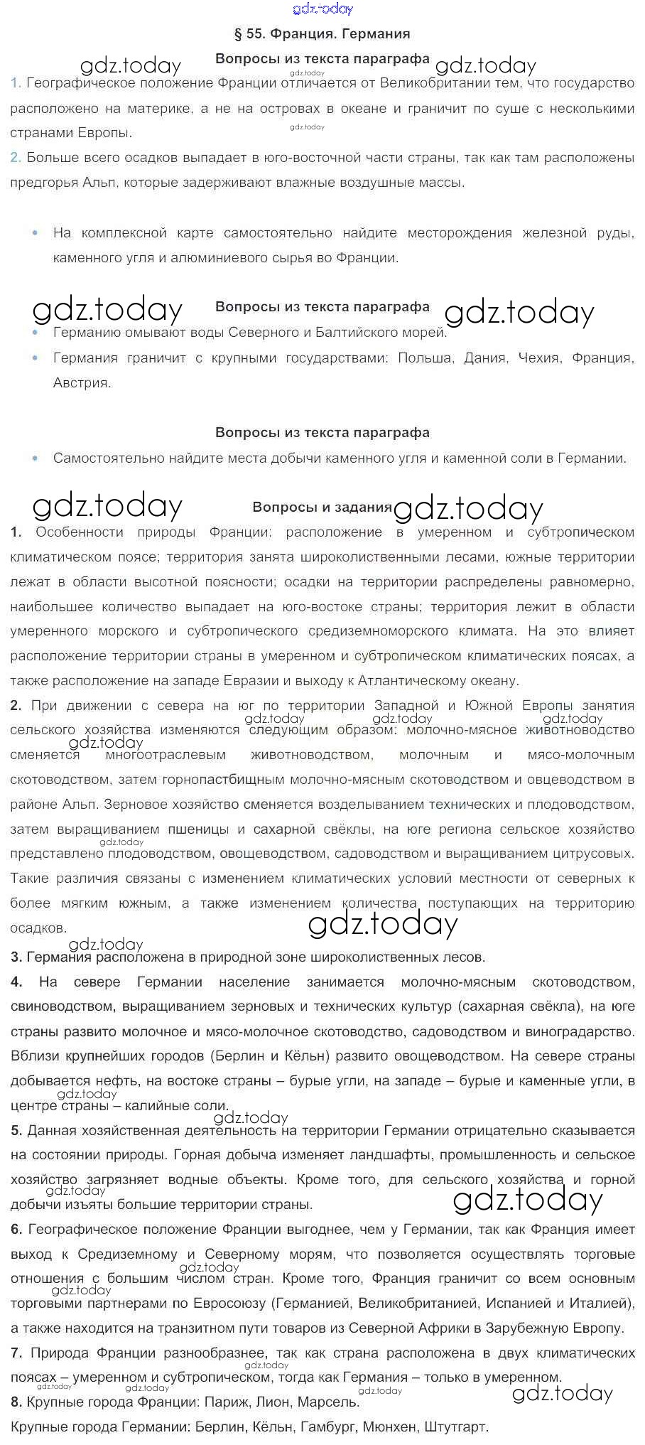 На страницах сайта gdz.today вы найдете учебный и вспомогательный материал, направленный на улучшения знаний школьной программы. ГДЗ - онлайн мир знаний Решение к параграфам 55 Учебнику по Географии для 7 класса Коринская, Душина Дрофа 2017