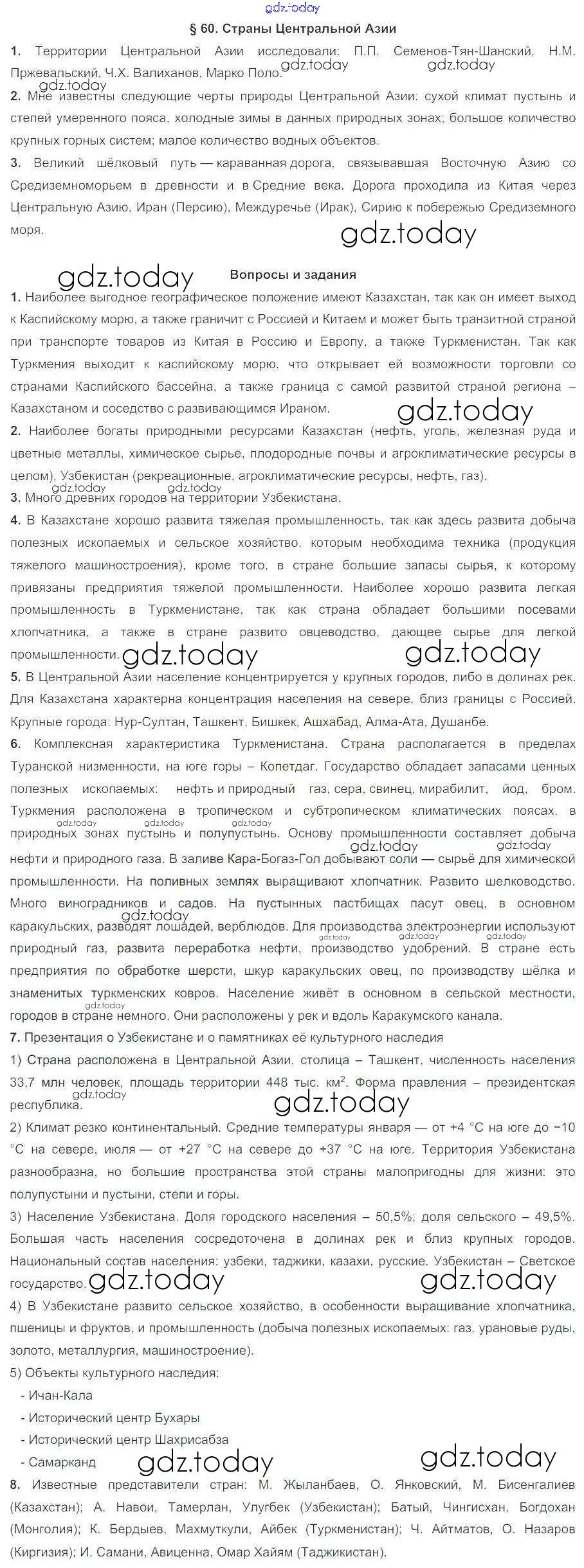На страницах сайта gdz.today вы найдете учебный и вспомогательный материал, направленный на улучшения знаний школьной программы. ГДЗ - онлайн мир знаний Решение к параграфам 60 Учебнику по Географии для 7 класса Коринская, Душина Дрофа 2017