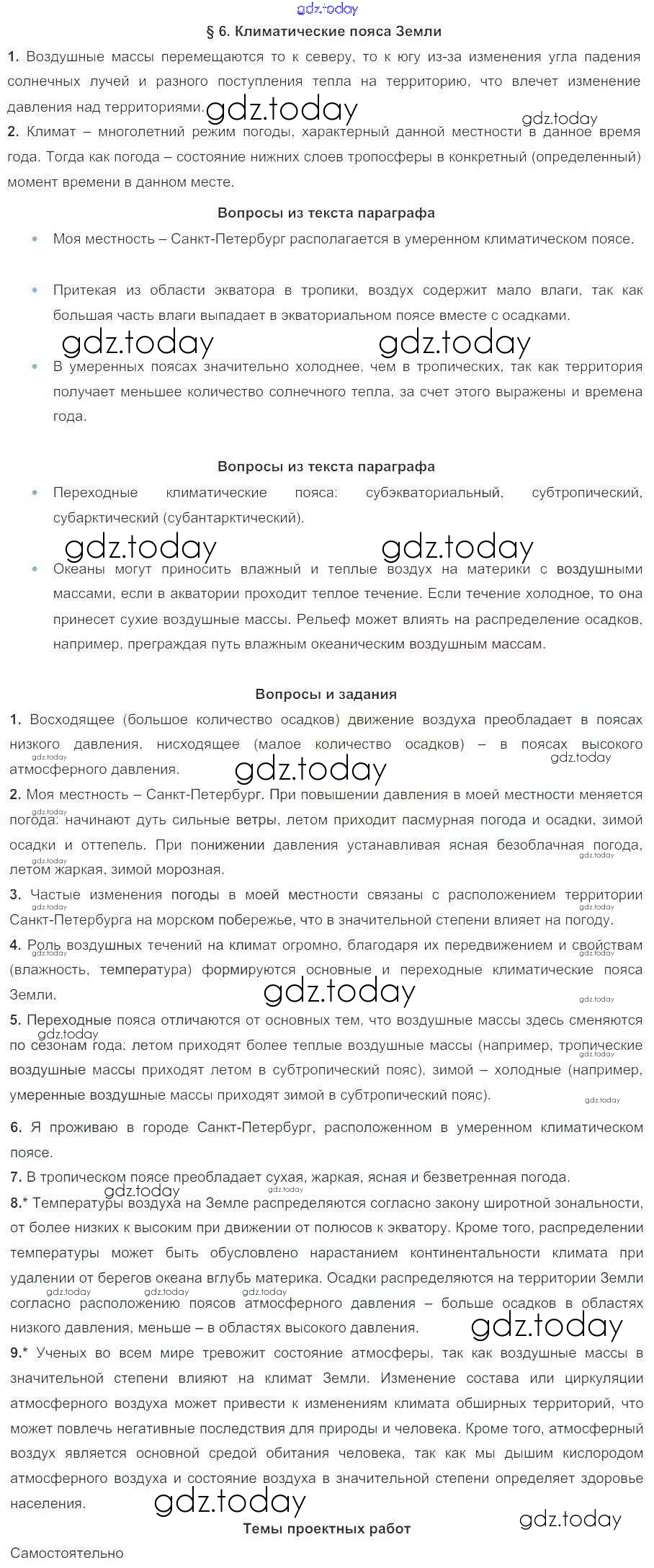 Ответы к Решение к параграфам 6 Учебнику по Географии для 7 класса Коринская, Душина Дрофа 2017