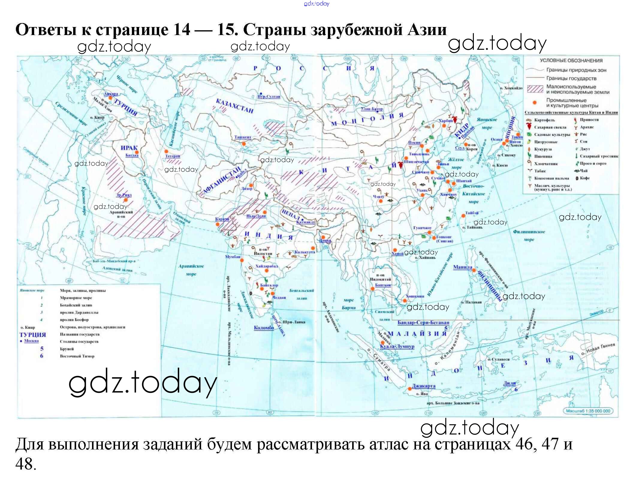 Ответы к Издание 2021 год (решение) стр.14-15 Контурным картам по Географии для 7 класса Курбский Дрофа, Просвещение 2018, 2021