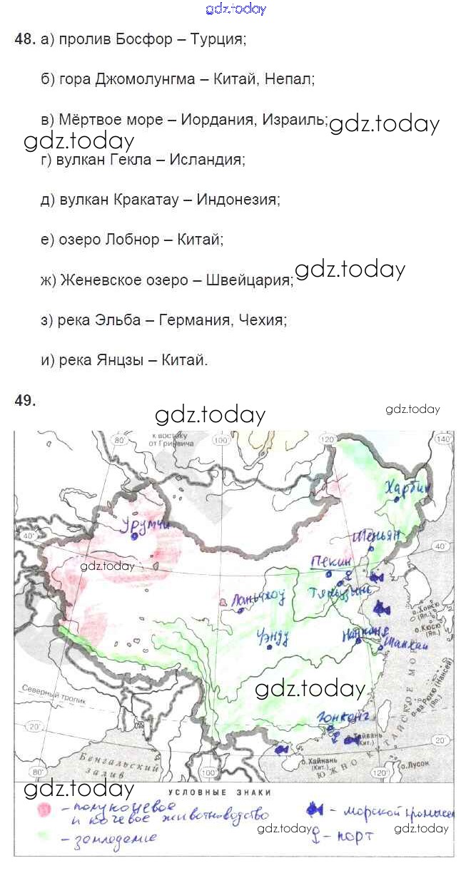 На страницах сайта gdz.today вы найдете учебный и вспомогательный материал, направленный на улучшения знаний школьной программы. ГДЗ - онлайн мир знаний Страницы (решение) 105 Рабочей тетради по Географии для 7 класса Душина Дрофа УМК 2017