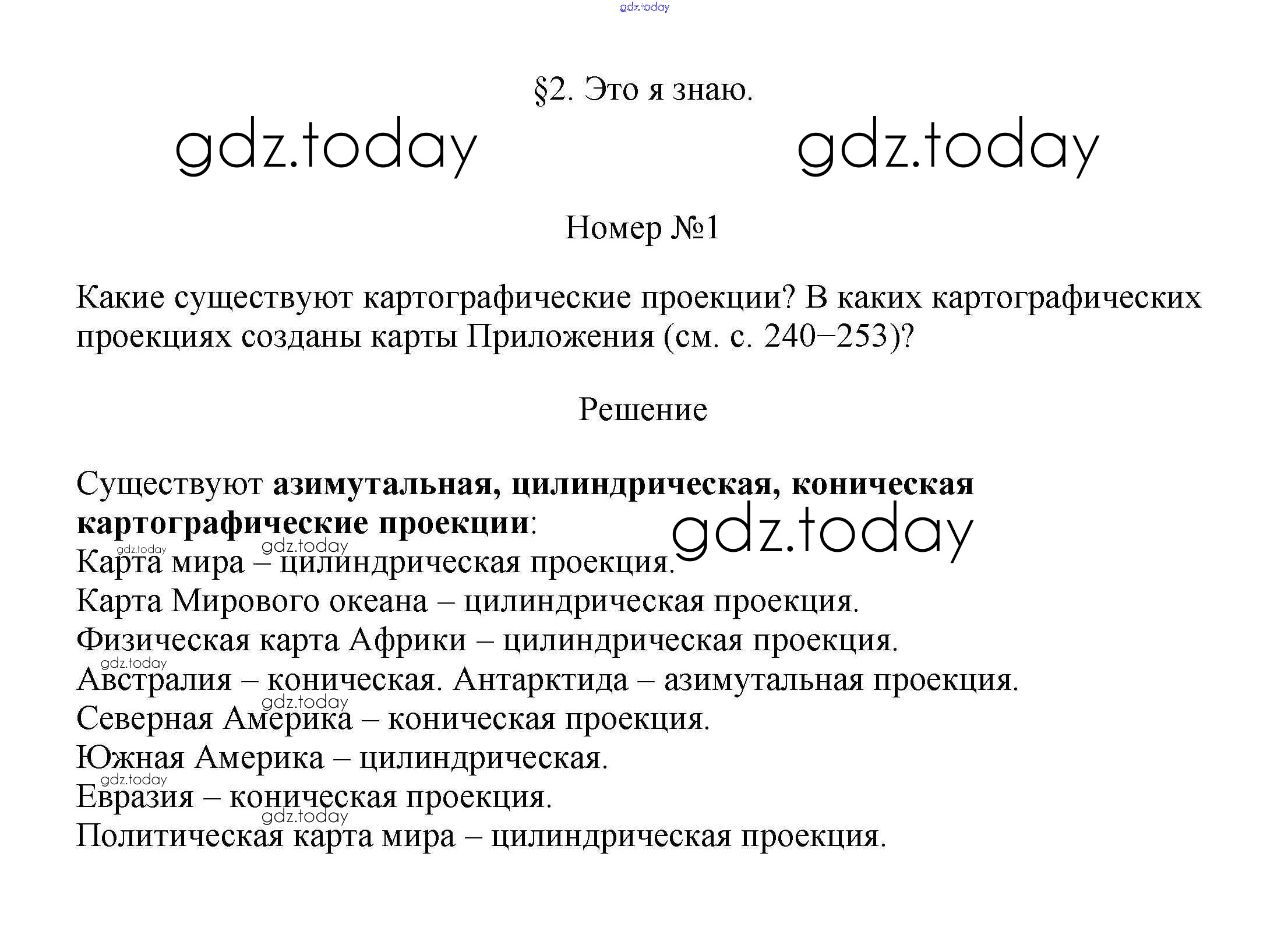 На страницах сайта gdz.today вы найдете учебный и вспомогательный материал, направленный на улучшения знаний школьной программы. ГДЗ - онлайн мир знаний Решение к §2. Географические карты 1 Учебнику по Географии для 7 класса Алексеев, Николина Просвещение Полярная звезда 2022