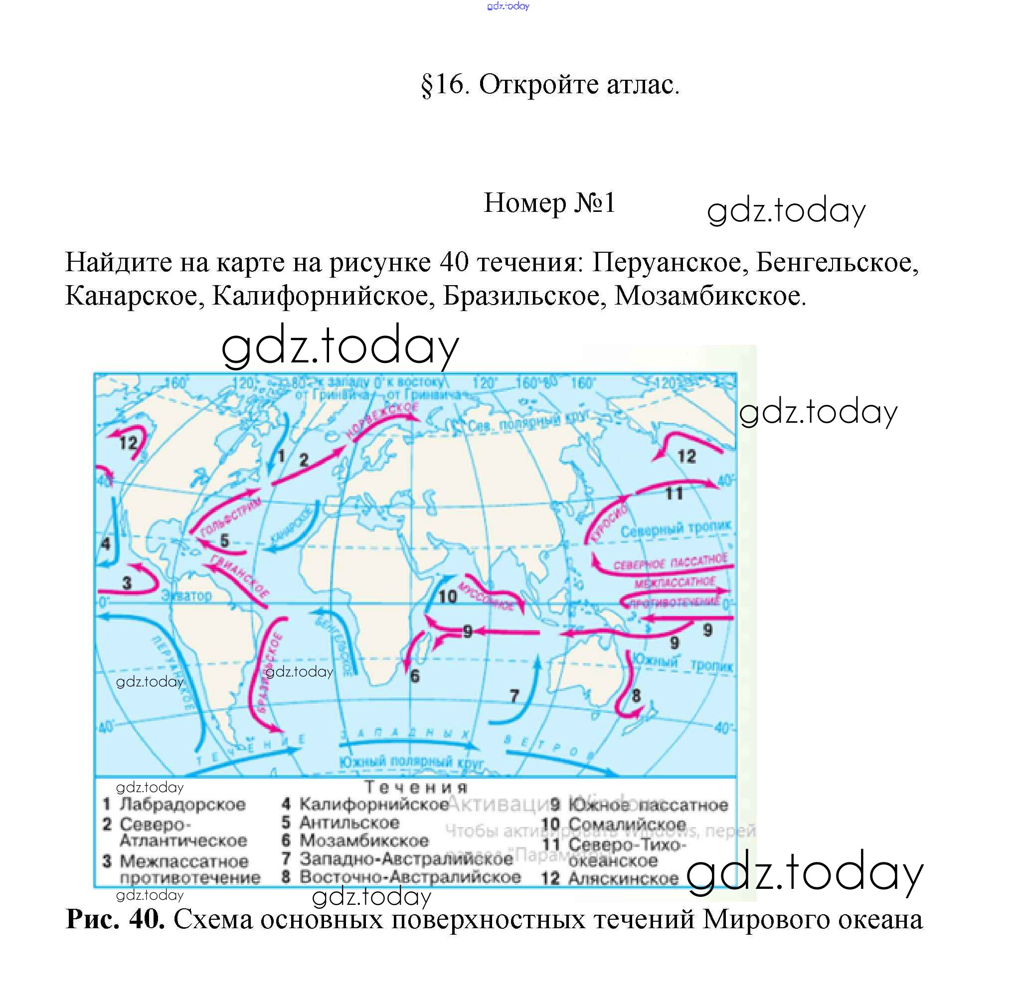 На страницах сайта gdz.today вы найдете учебный и вспомогательный материал, направленный на улучшения знаний школьной программы. ГДЗ - онлайн мир знаний Решение к §16. Океанические течения 1 Учебнику по Географии для 7 класса Алексеев, Николина Просвещение Полярная звезда 2022