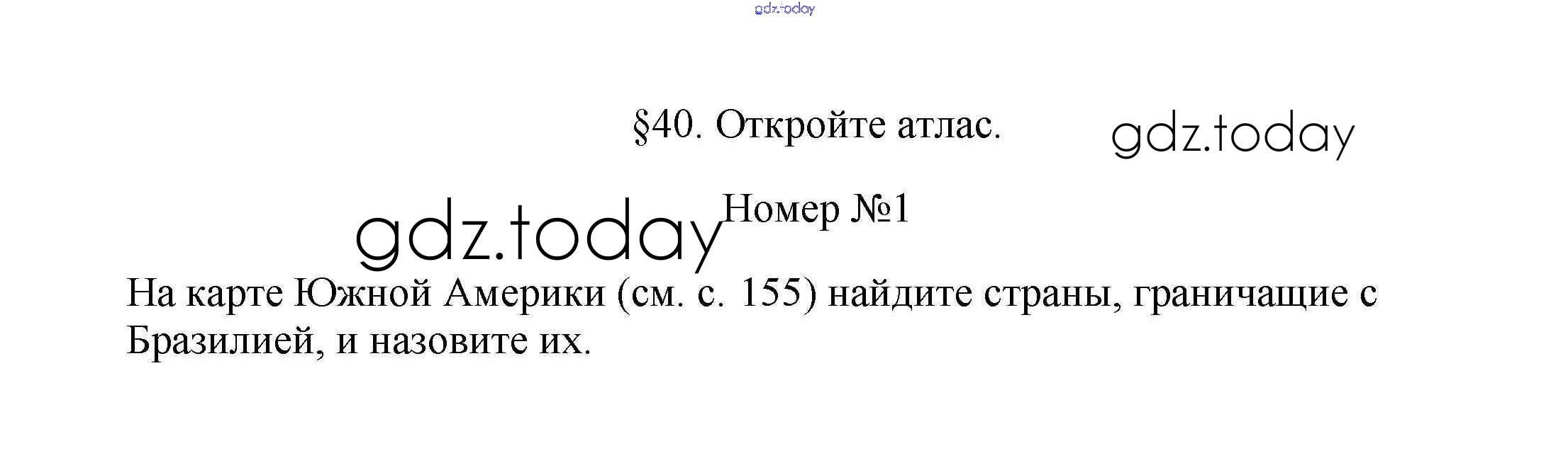 На страницах сайта gdz.today вы найдете учебный и вспомогательный материал, направленный на улучшения знаний школьной программы. ГДЗ - онлайн мир знаний Решение к §40. Бразилия 1 Учебнику по Географии для 7 класса Алексеев, Николина Просвещение Полярная звезда 2022