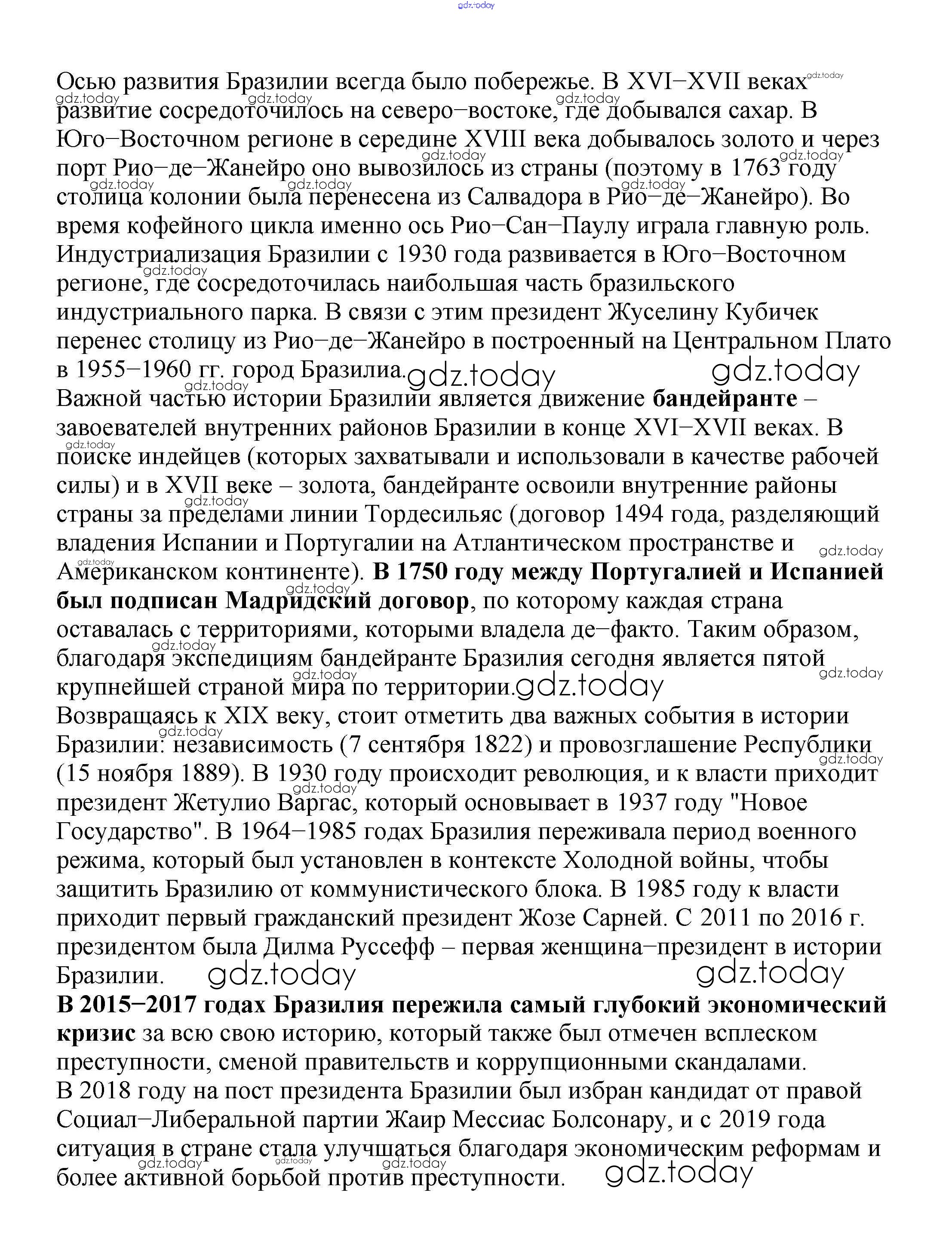 На страницах сайта gdz.today вы найдете учебный и вспомогательный материал, направленный на улучшения знаний школьной программы. ГДЗ - онлайн мир знаний Решение к §40. Бразилия 2 Учебнику по Географии для 7 класса Алексеев, Николина Просвещение Полярная звезда 2022