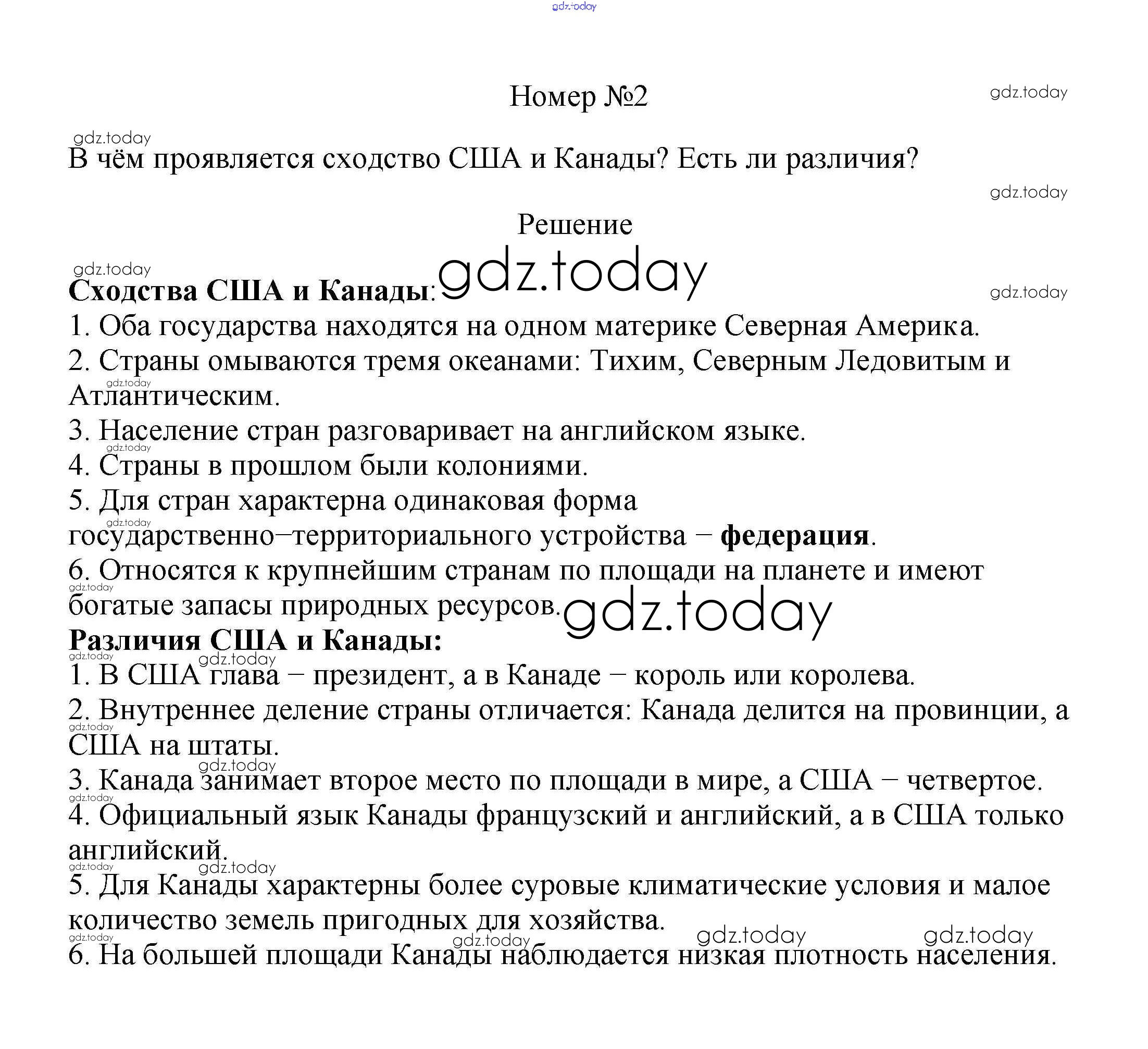 На страницах сайта gdz.today вы найдете учебный и вспомогательный материал, направленный на улучшения знаний школьной программы. ГДЗ - онлайн мир знаний Решение к §42. Англо-Саксонская Америка 2 Учебнику по Географии для 7 класса Алексеев, Николина Просвещение Полярная звезда 2022