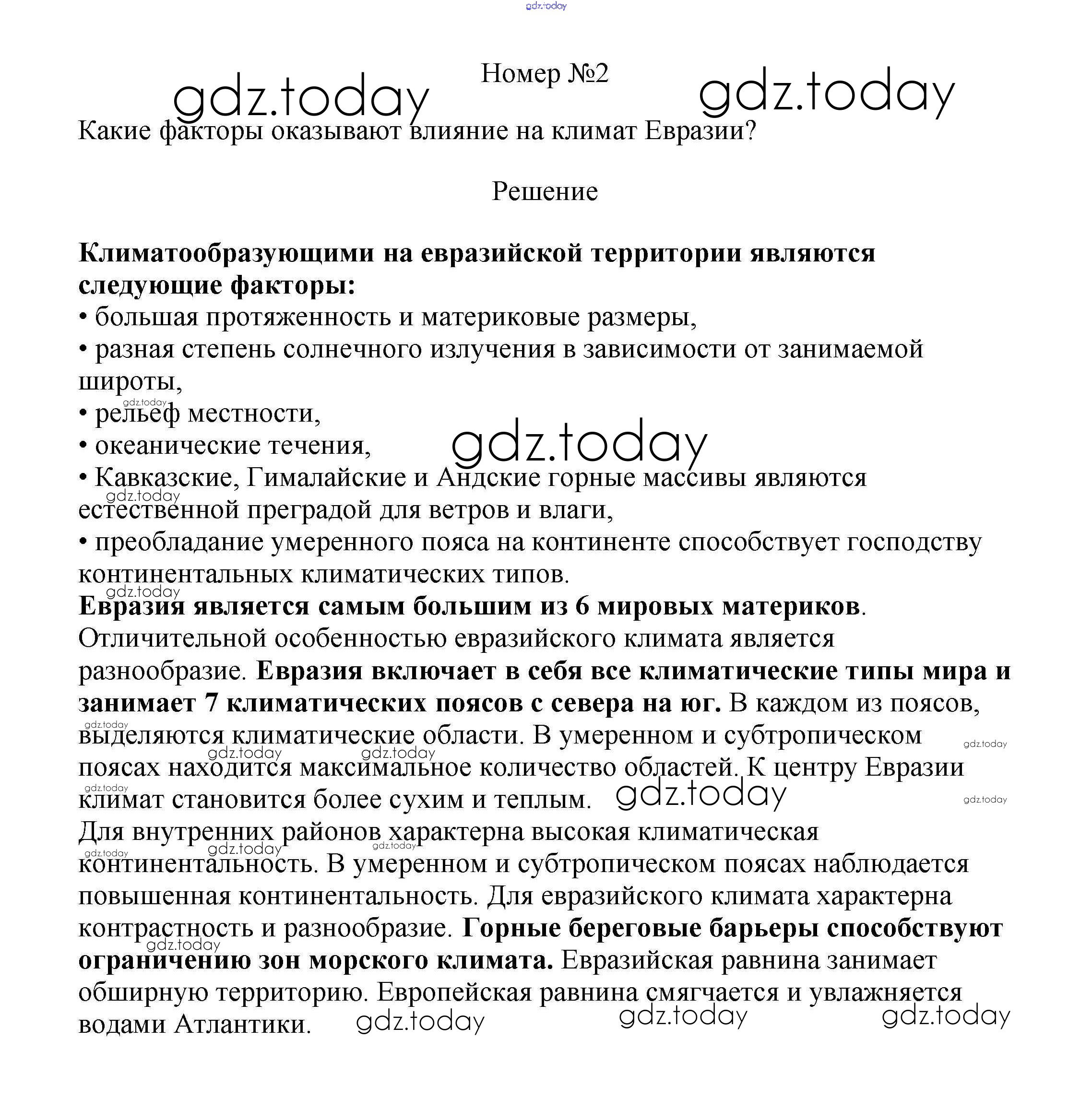 На страницах сайта gdz.today вы найдете учебный и вспомогательный материал, направленный на улучшения знаний школьной программы. ГДЗ - онлайн мир знаний Решение к §47. Евразия: образ материка (2) 2 Учебнику по Географии для 7 класса Алексеев, Николина Просвещение Полярная звезда 2022
