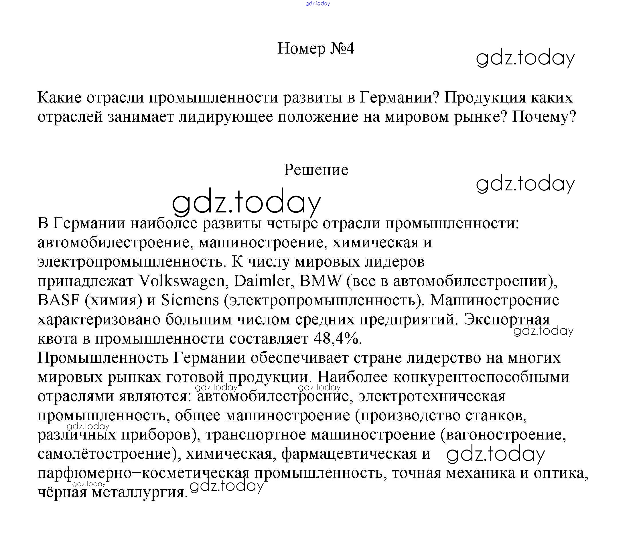 На страницах сайта gdz.today вы найдете учебный и вспомогательный материал, направленный на улучшения знаний школьной программы. ГДЗ - онлайн мир знаний Решение к §51. Германия 4 Учебнику по Географии для 7 класса Алексеев, Николина Просвещение Полярная звезда 2022
