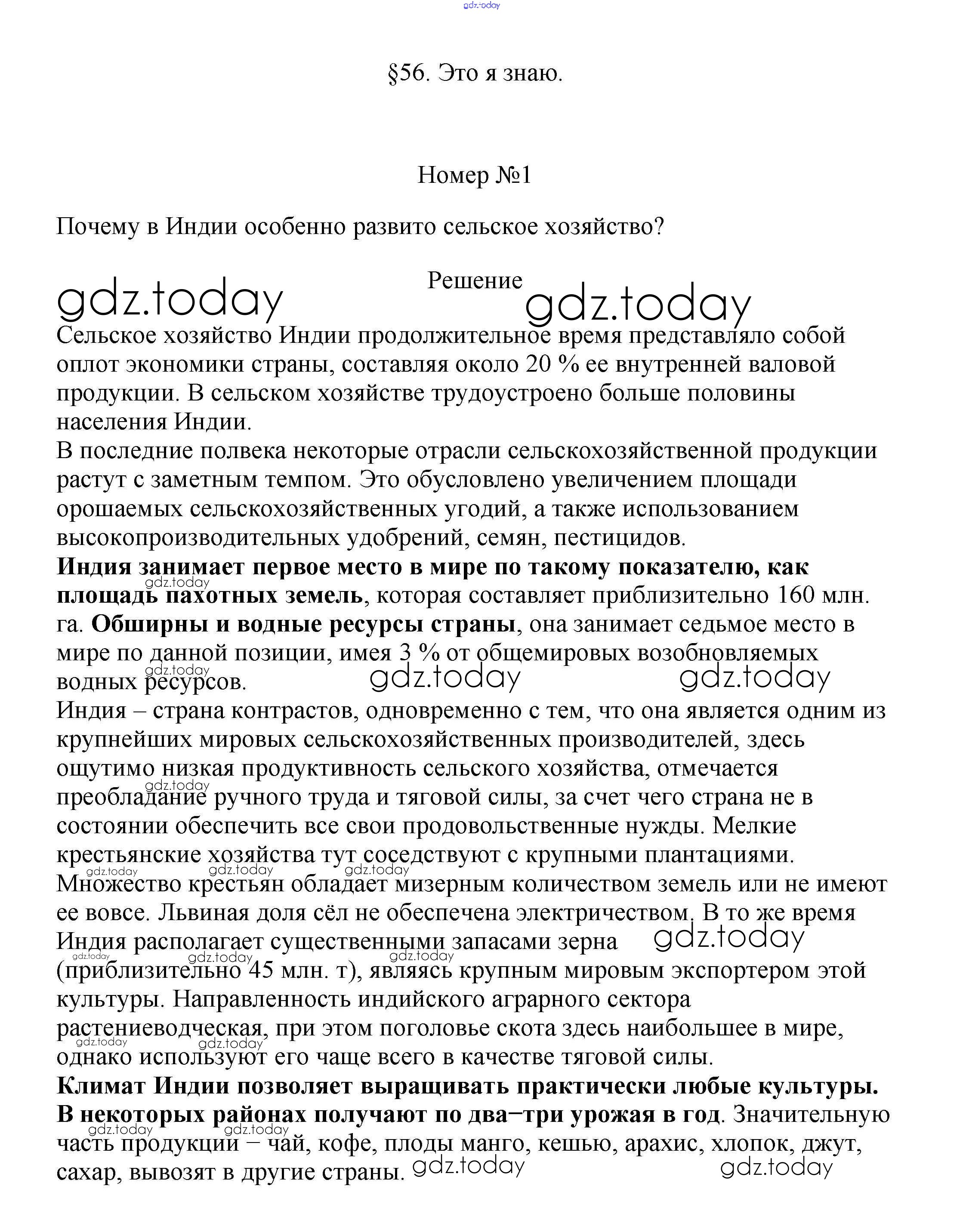 На страницах сайта gdz.today вы найдете учебный и вспомогательный материал, направленный на улучшения знаний школьной программы. ГДЗ - онлайн мир знаний Решение к §56. Индия 1 Учебнику по Географии для 7 класса Алексеев, Николина Просвещение Полярная звезда 2022