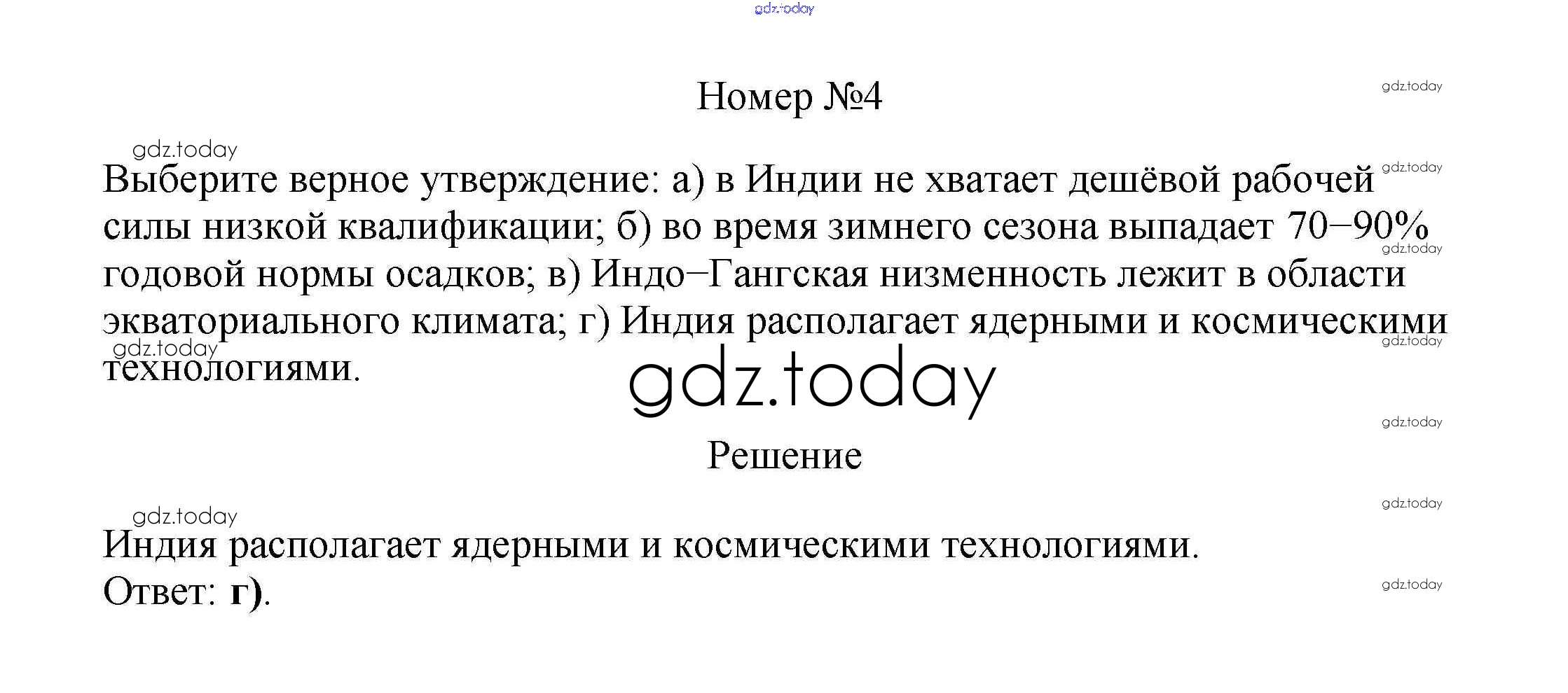 На страницах сайта gdz.today вы найдете учебный и вспомогательный материал, направленный на улучшения знаний школьной программы. ГДЗ - онлайн мир знаний Решение к §56. Индия 4 Учебнику по Географии для 7 класса Алексеев, Николина Просвещение Полярная звезда 2022