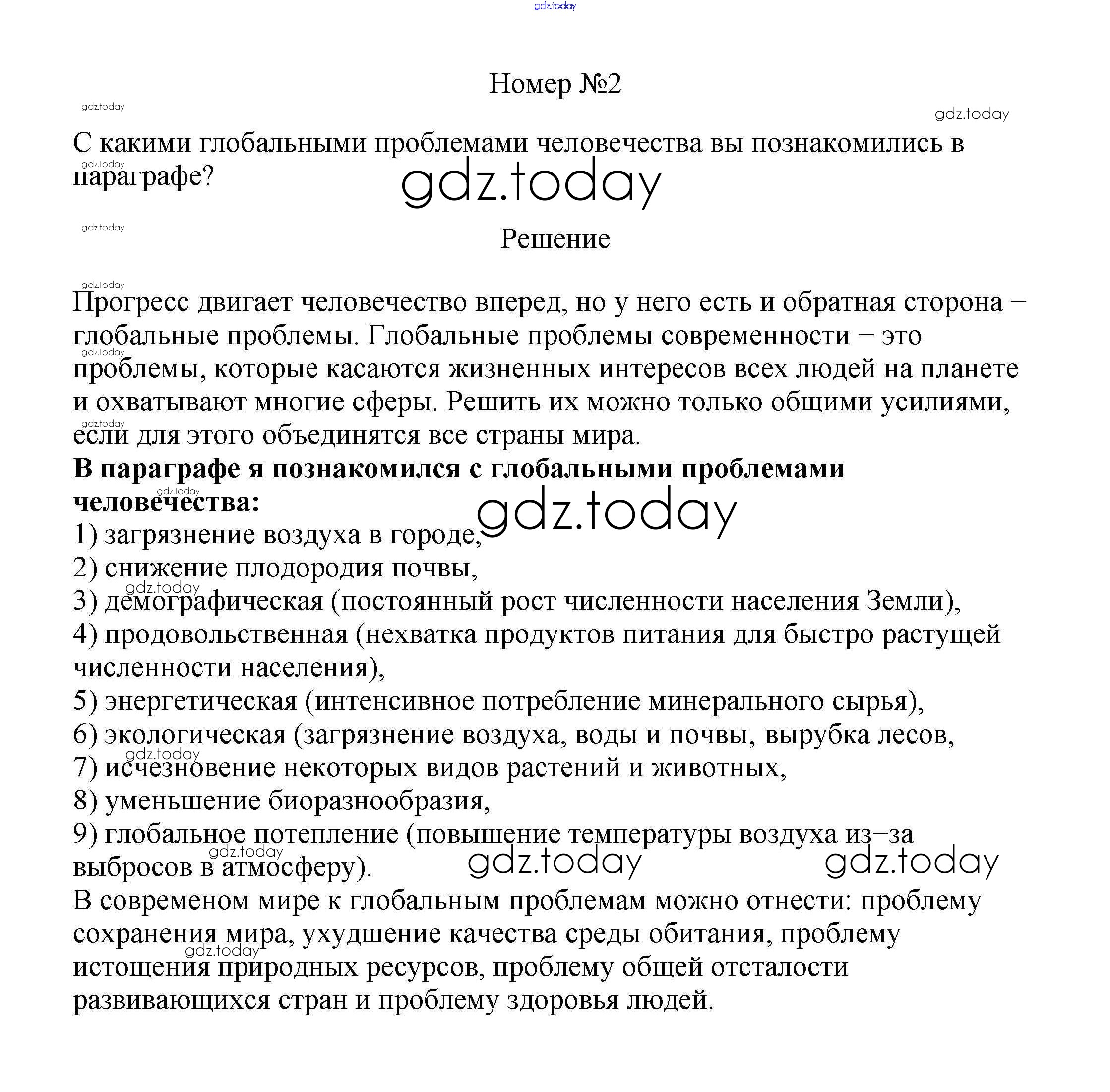 На страницах сайта gdz.today вы найдете учебный и вспомогательный материал, направленный на улучшения знаний школьной программы. ГДЗ - онлайн мир знаний Решение к §57. Глобальные проблемы человечества 2 Учебнику по Географии для 7 класса Алексеев, Николина Просвещение Полярная звезда 2022