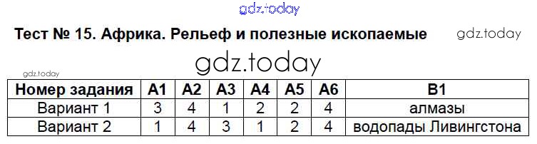 На страницах сайта gdz.today вы найдете учебный и вспомогательный материал, направленный на улучшения знаний школьной программы. ГДЗ - онлайн мир знаний Решение к тестам 15 Контрольно-измерительным материалам (КИМ) по Географии для 7 класса Жижина ВАКО 2017