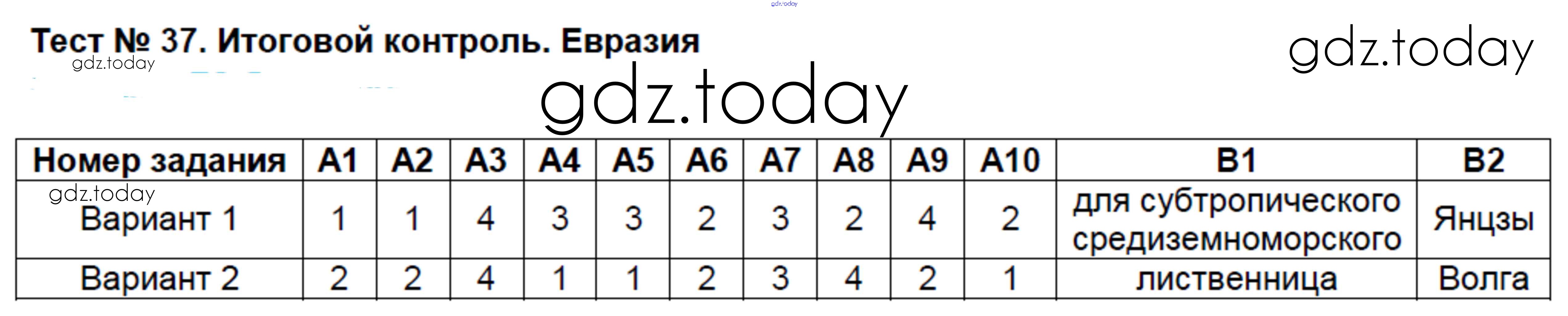На страницах сайта gdz.today вы найдете учебный и вспомогательный материал, направленный на улучшения знаний школьной программы. ГДЗ - онлайн мир знаний Решение к тестам 37 Контрольно-измерительным материалам (КИМ) по Географии для 7 класса Жижина ВАКО 2017
