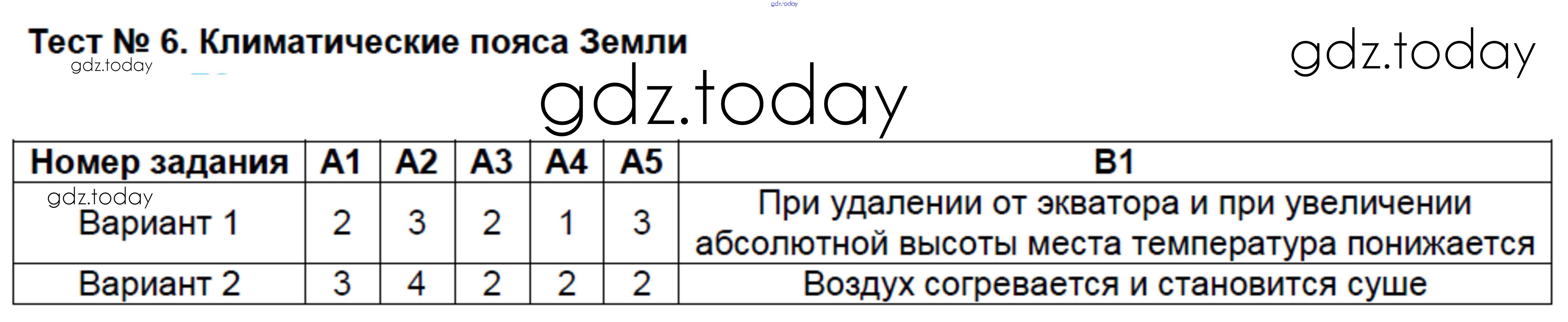 На страницах сайта gdz.today вы найдете учебный и вспомогательный материал, направленный на улучшения знаний школьной программы. ГДЗ - онлайн мир знаний Решение к тестам 6 Контрольно-измерительным материалам (КИМ) по Географии для 7 класса Жижина ВАКО 2017