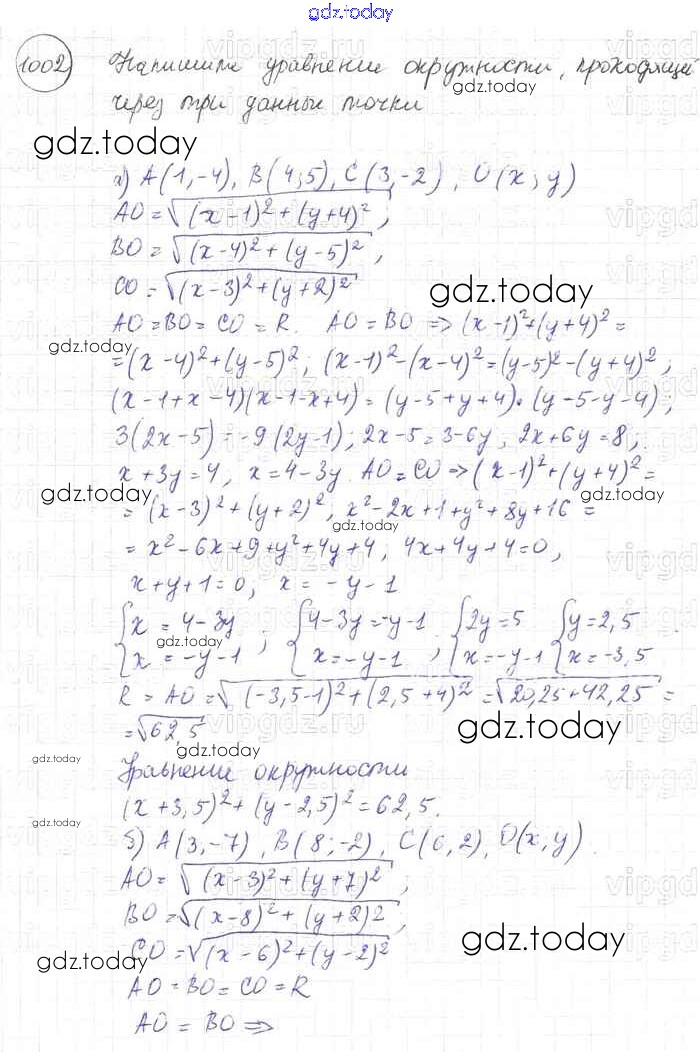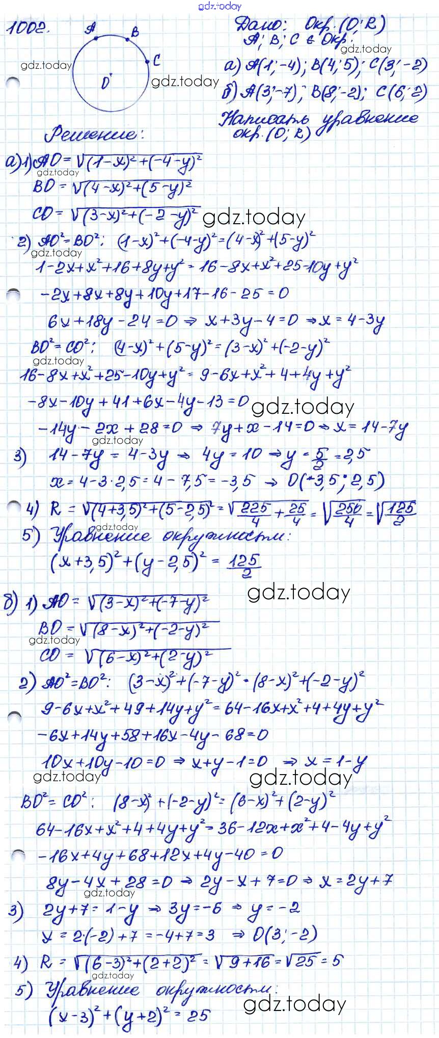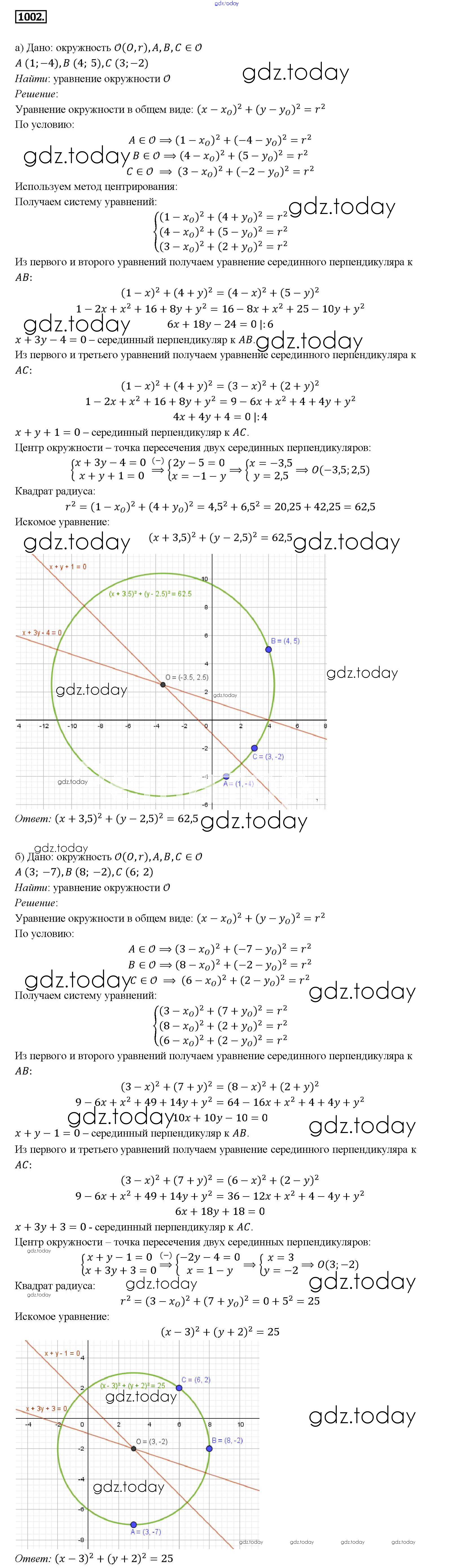 Ответы к Решение. Задачи 1002 Учебнику по Геометрии для 7-9 класса Атанасян, Бутузов Просвещение 2010