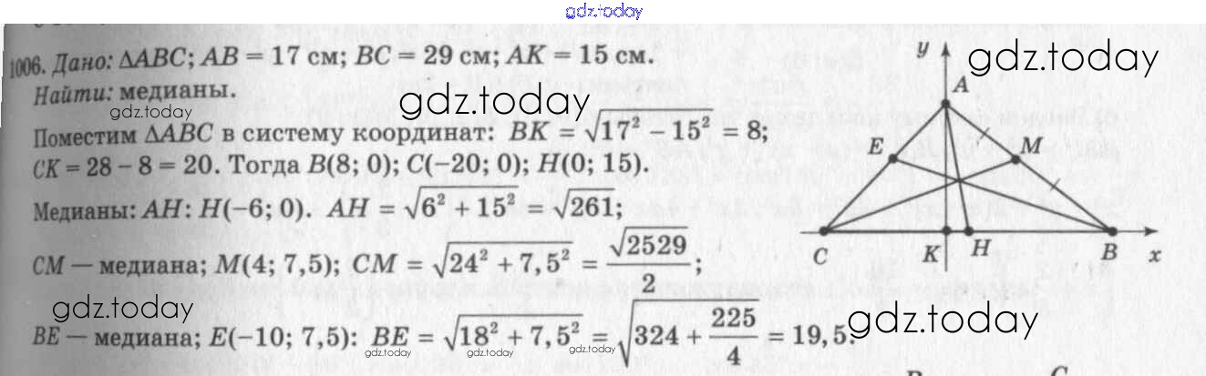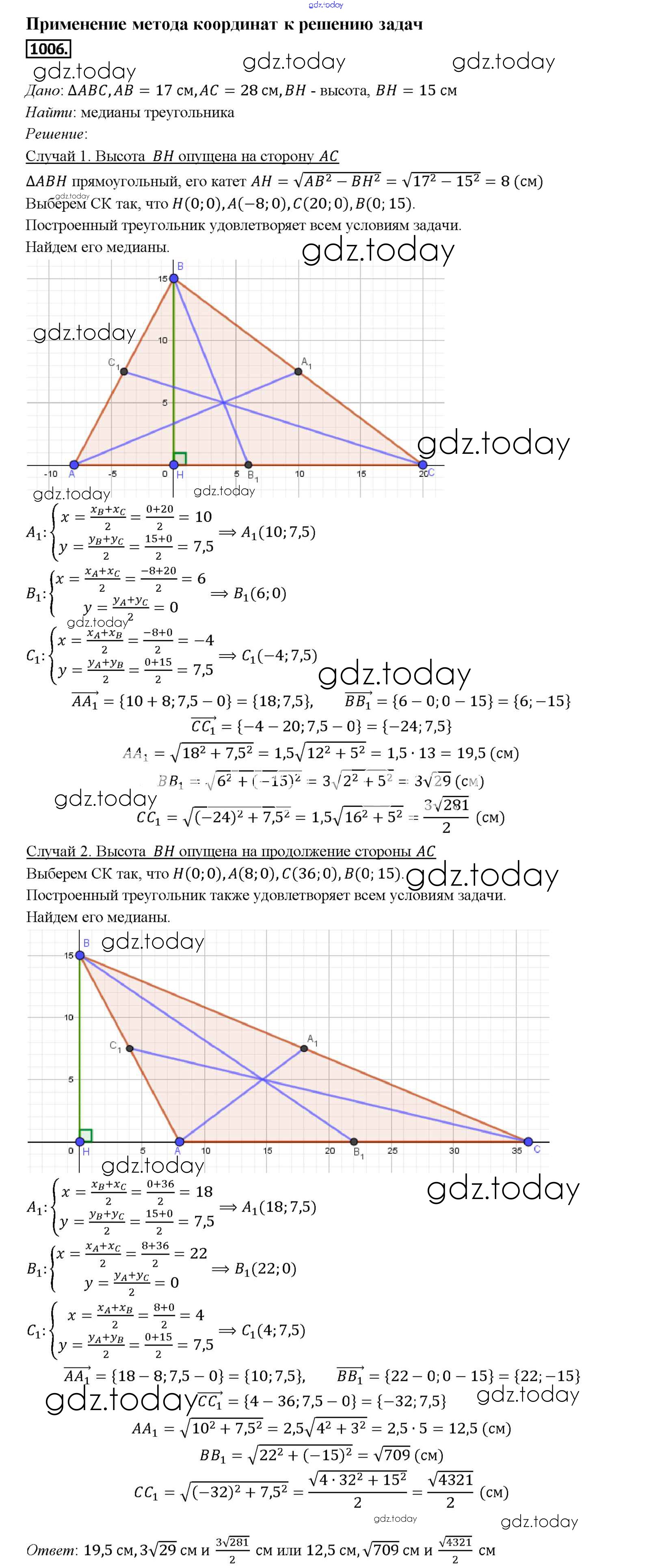 Ответы к Решение. Задачи 1006 Учебнику по Геометрии для 7-9 класса Атанасян, Бутузов Просвещение 2010