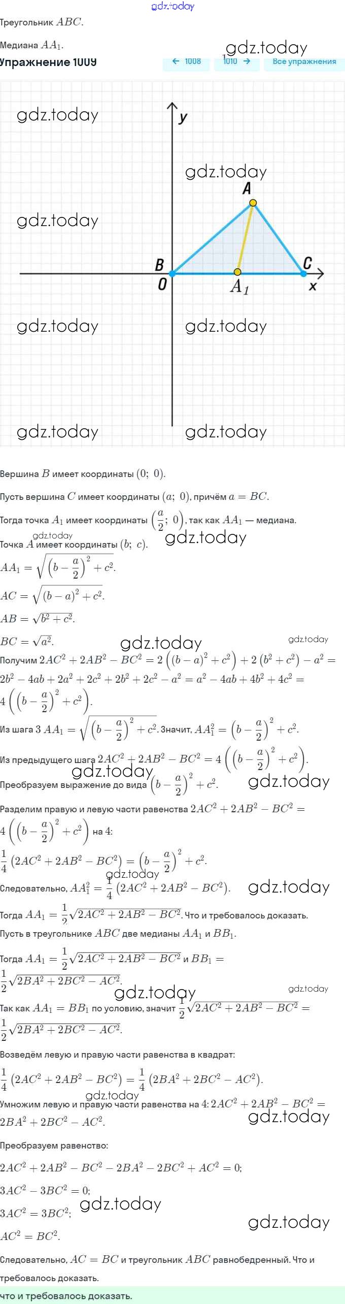 На страницах сайта gdz.today вы найдете учебный и вспомогательный материал, направленный на улучшения знаний школьной программы. ГДЗ - онлайн мир знаний Решение. Задачи 1009 Учебнику по Геометрии для 7-9 класса Атанасян, Бутузов Просвещение 2010