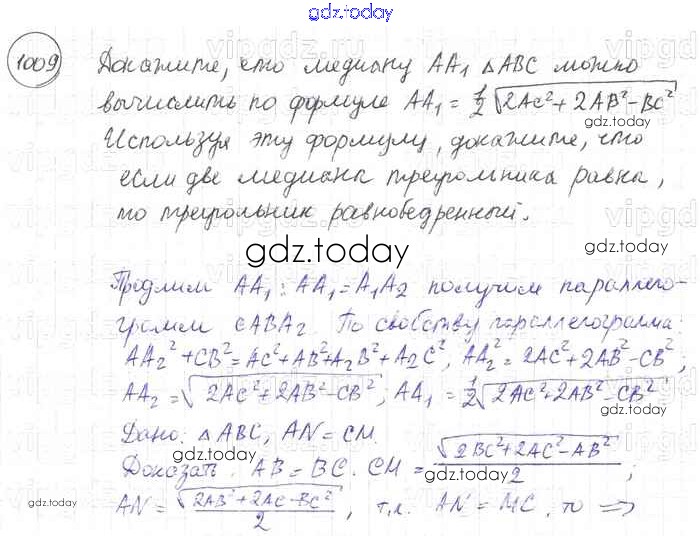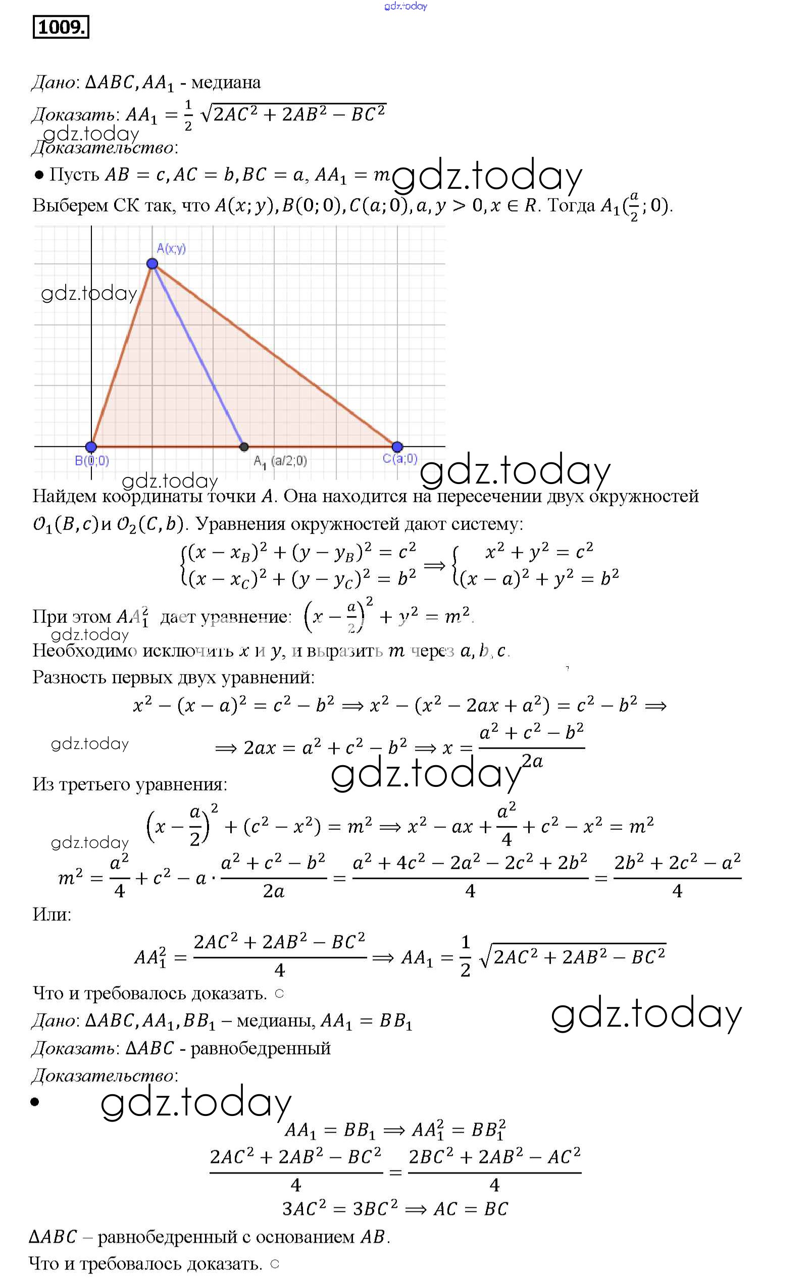 Ответы к Решение. Задачи 1009 Учебнику по Геометрии для 7-9 класса Атанасян, Бутузов Просвещение 2010