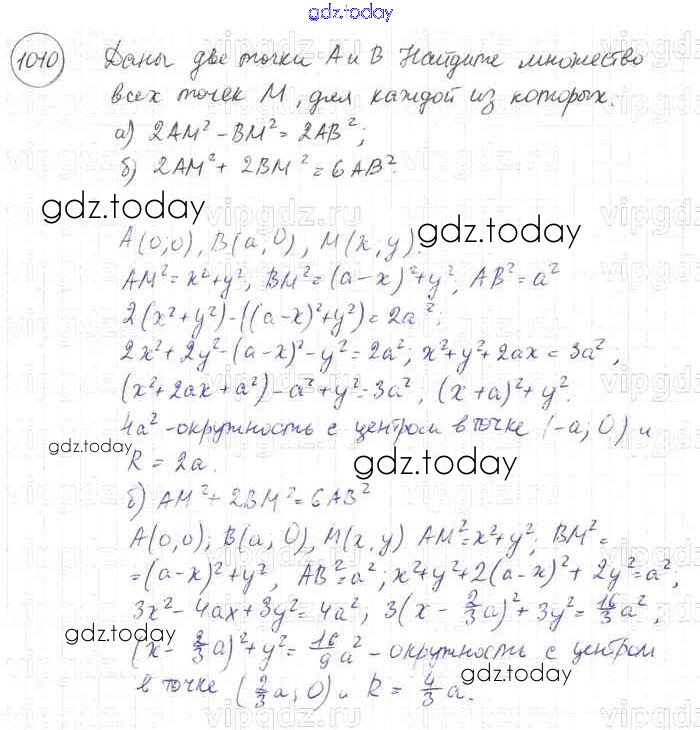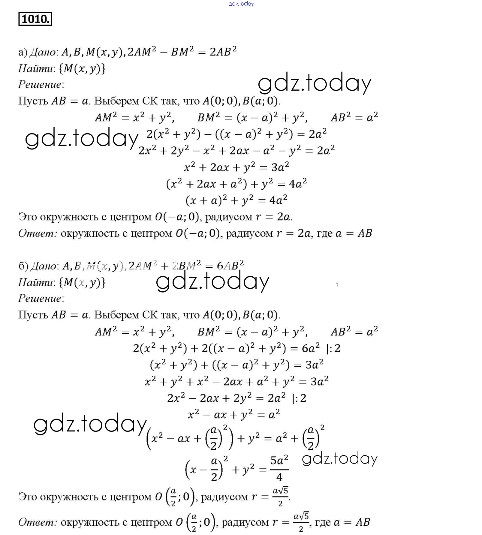 Ответы к Решение. Задачи 1010 Учебнику по Геометрии для 7-9 класса Атанасян, Бутузов Просвещение 2010
