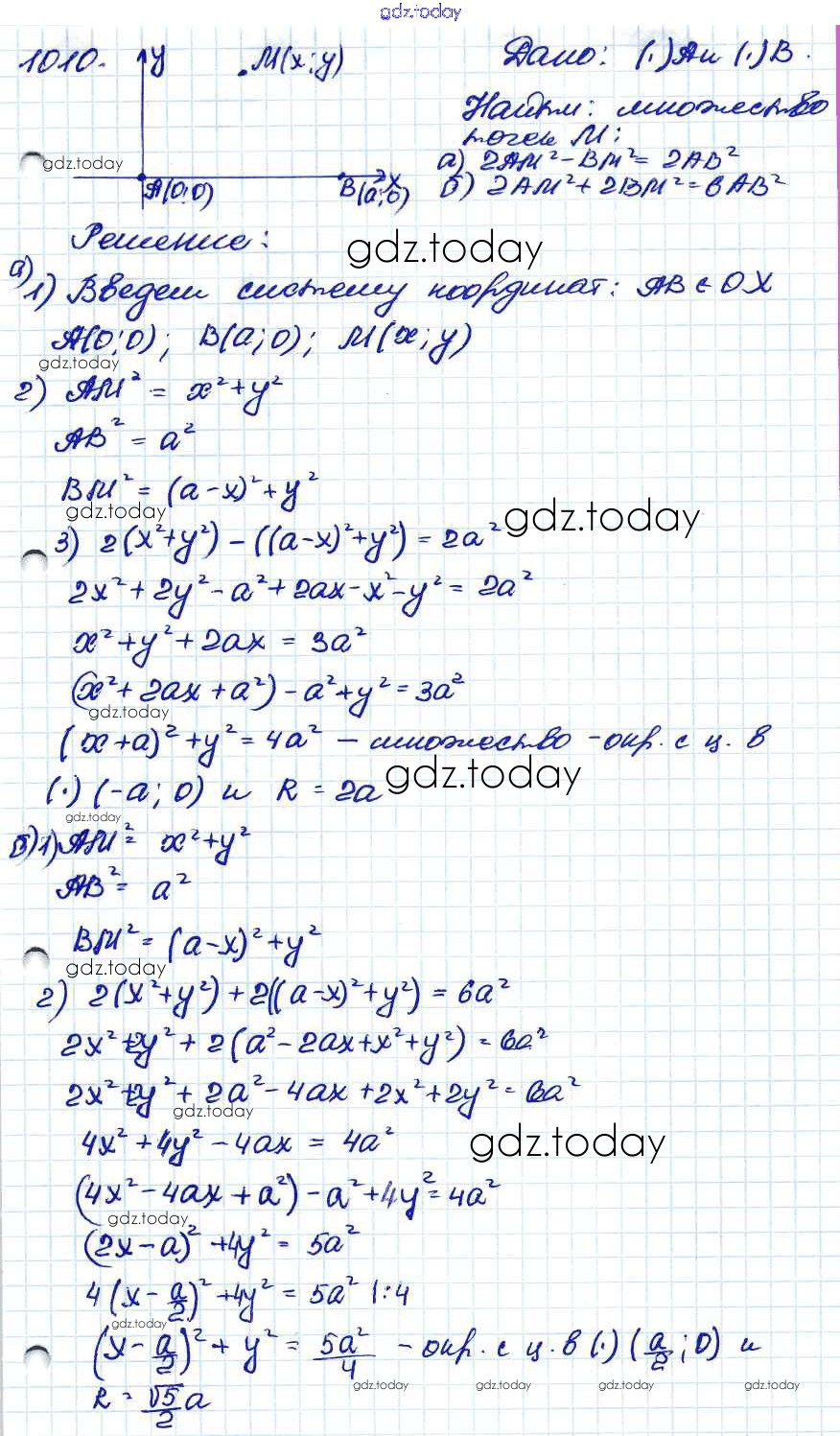 На страницах сайта gdz.today вы найдете учебный и вспомогательный материал, направленный на улучшения знаний школьной программы. ГДЗ - онлайн мир знаний Решение. Задачи 1010 Учебнику по Геометрии для 7-9 класса Атанасян, Бутузов Просвещение 2010