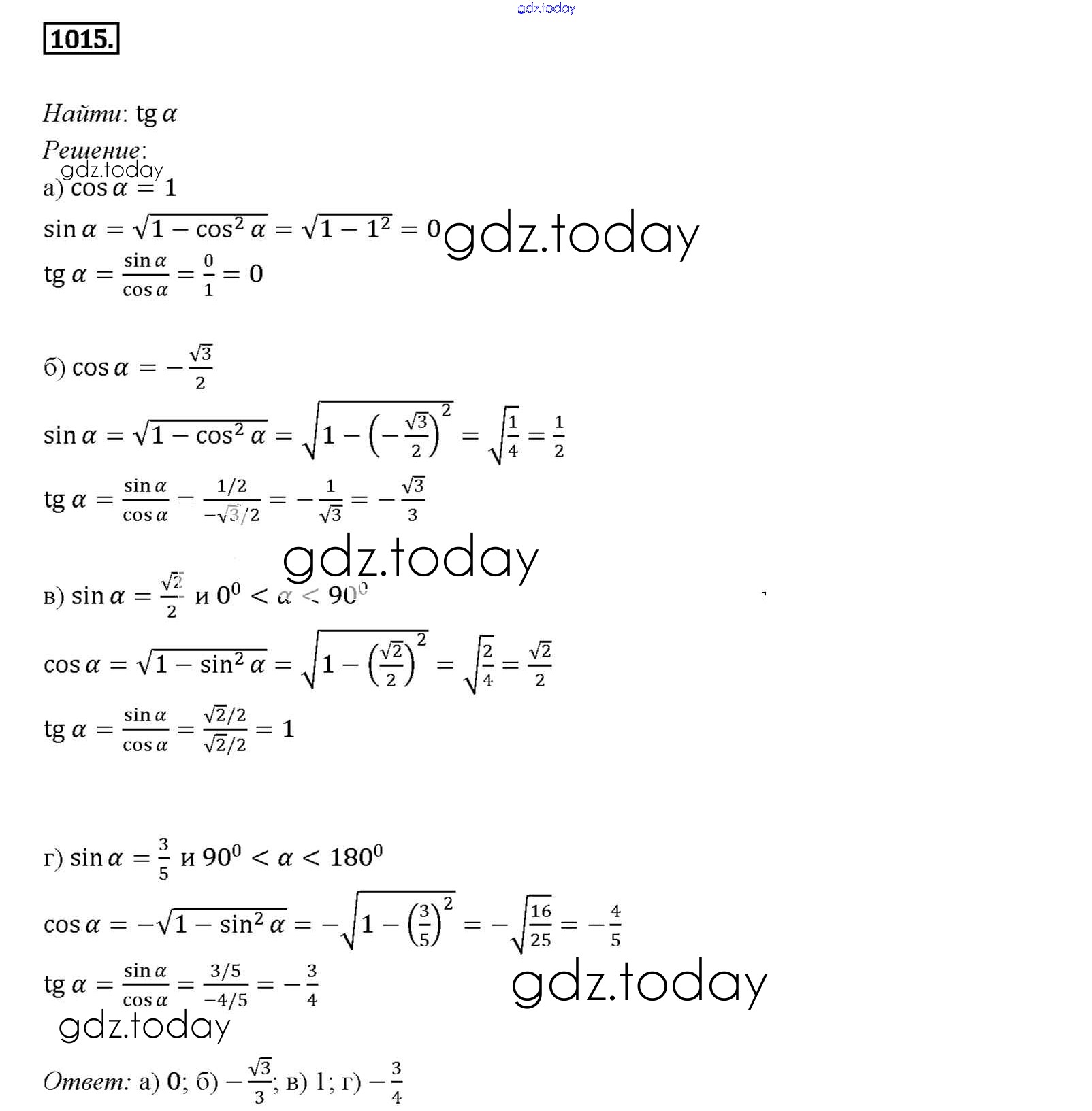 Ответы к Решение. Задачи 1015 Учебнику по Геометрии для 7-9 класса Атанасян, Бутузов Просвещение 2010