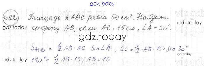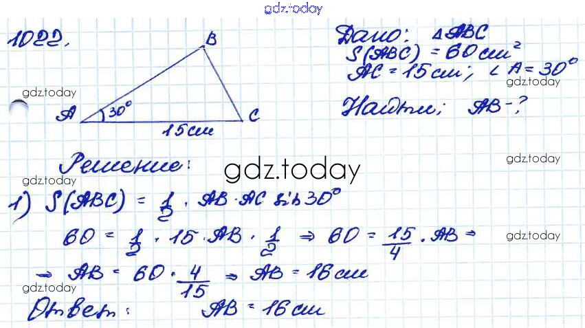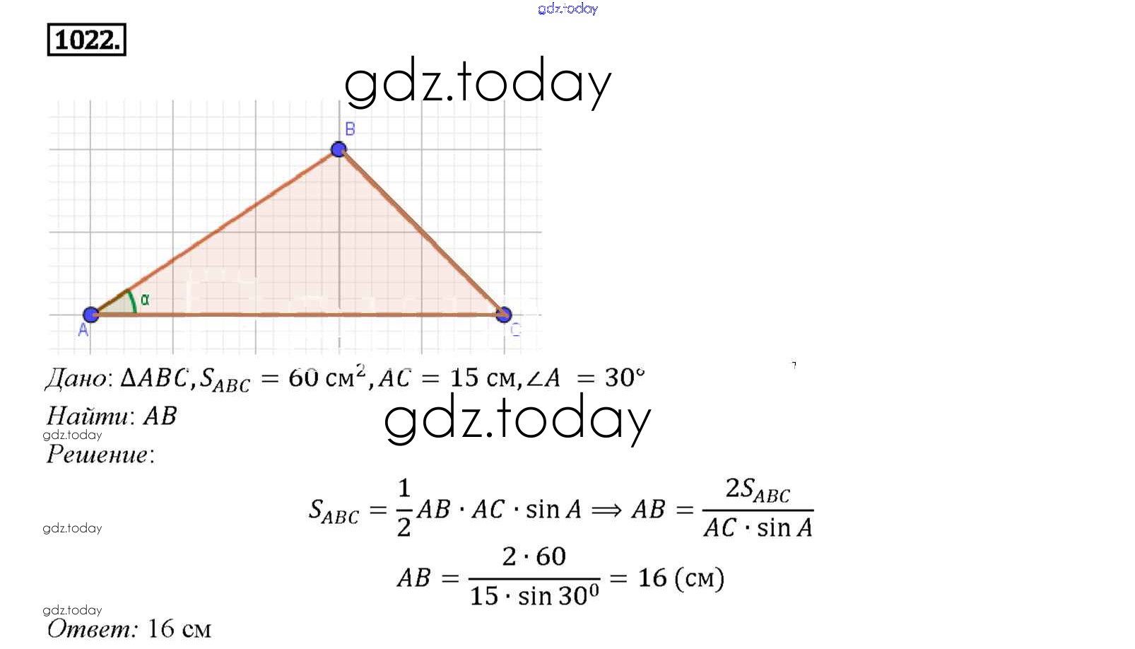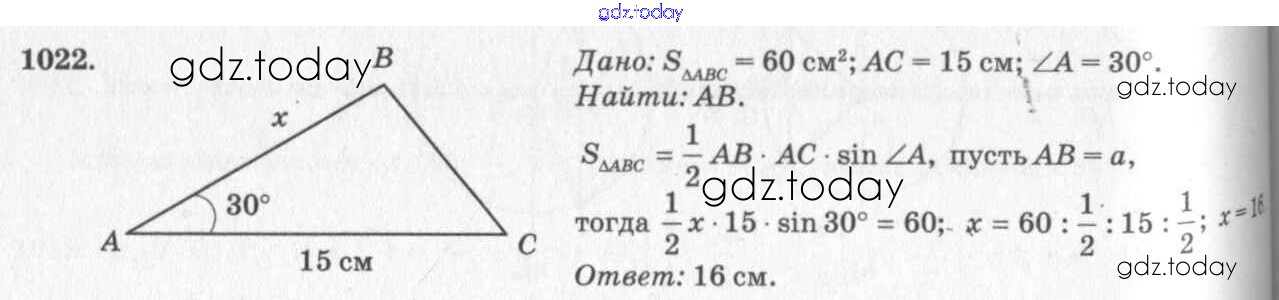 Ответы к Решение. Задачи 1022 Учебнику по Геометрии для 7-9 класса Атанасян, Бутузов Просвещение 2010