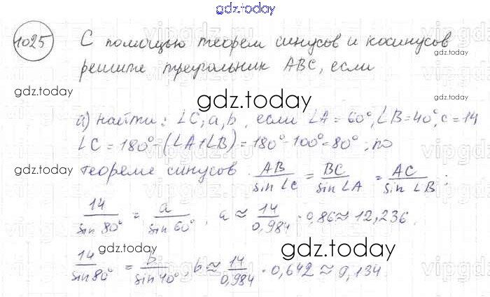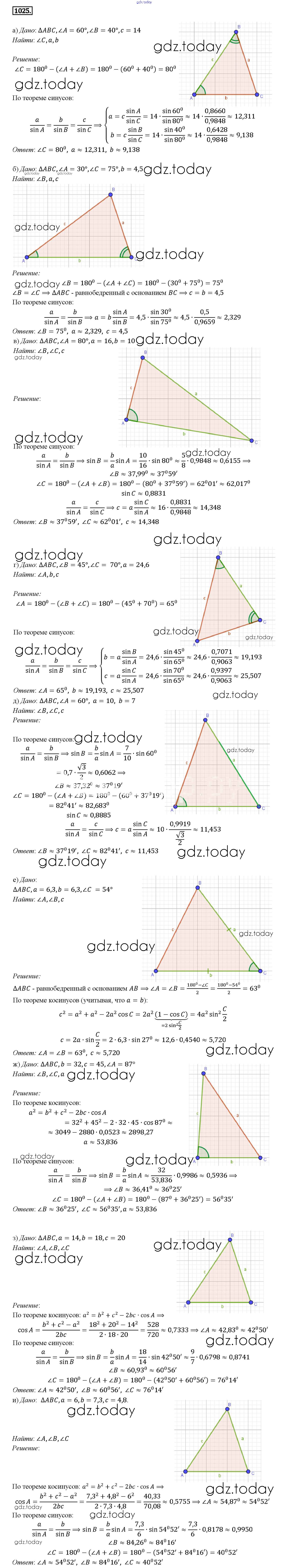 Ответы к Решение. Задачи 1025 Учебнику по Геометрии для 7-9 класса Атанасян, Бутузов Просвещение 2010