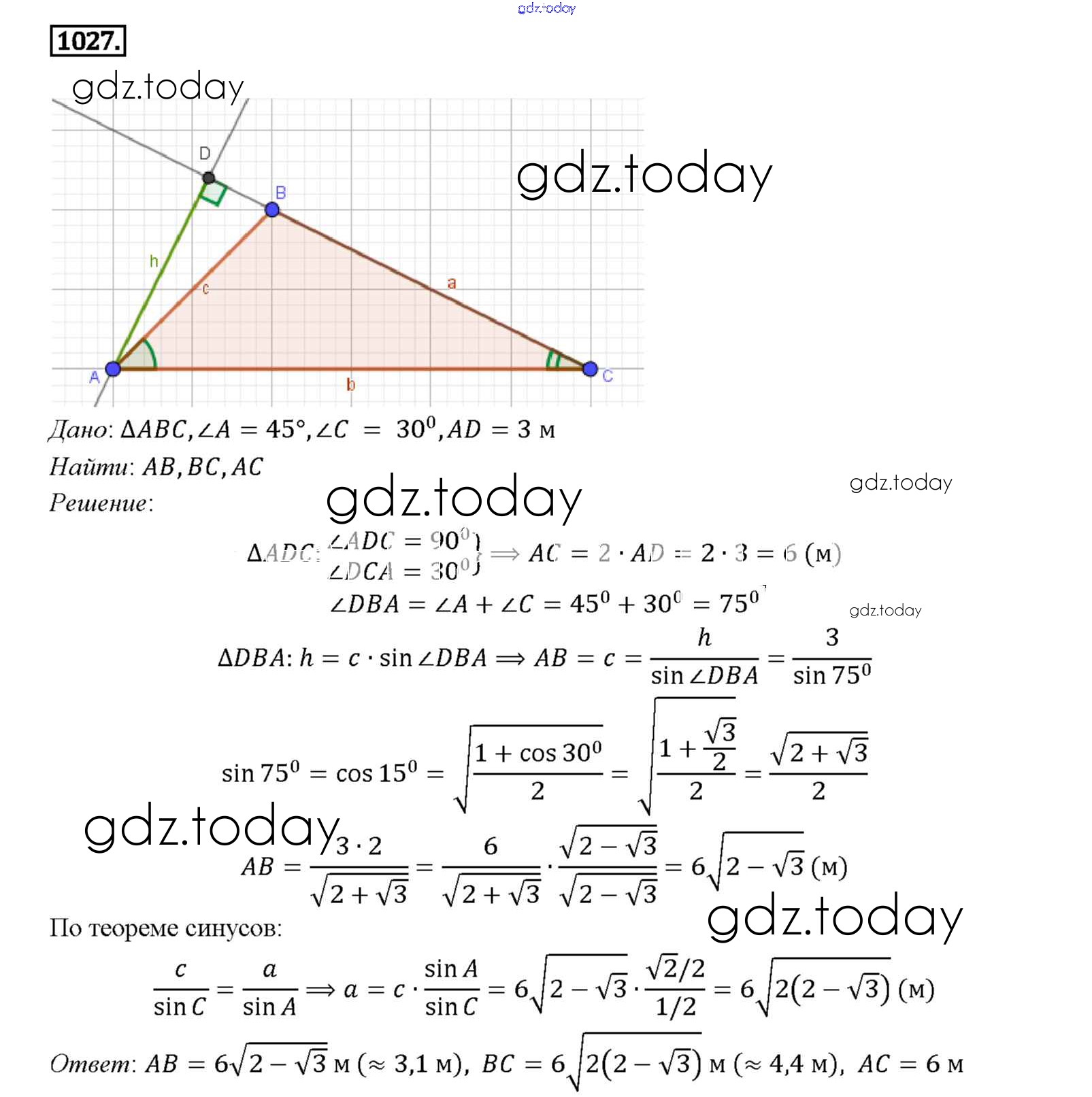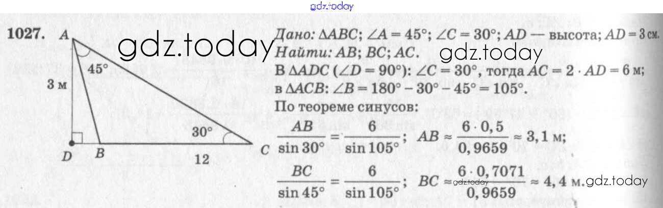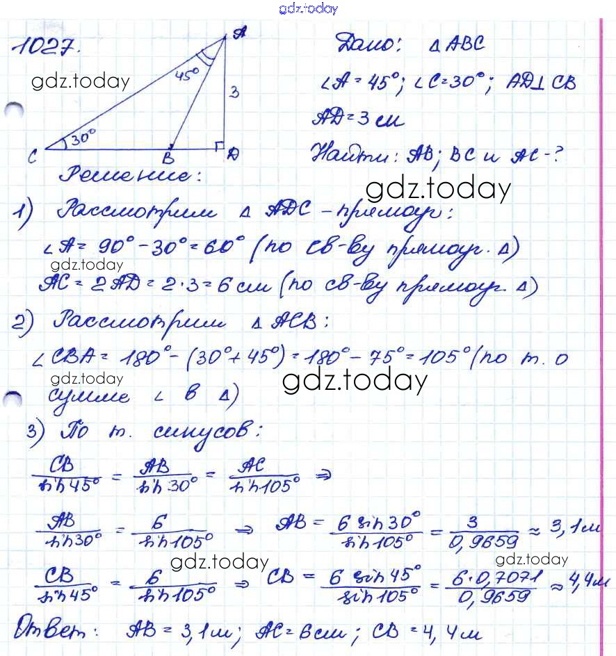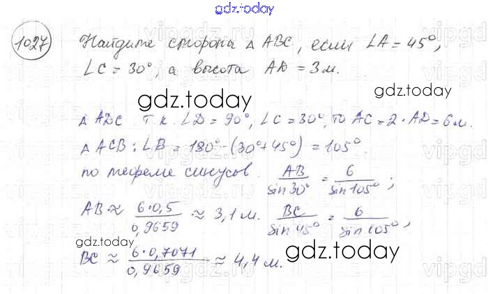 Ответы к Решение. Задачи 1027 Учебнику по Геометрии для 7-9 класса Атанасян, Бутузов Просвещение 2010