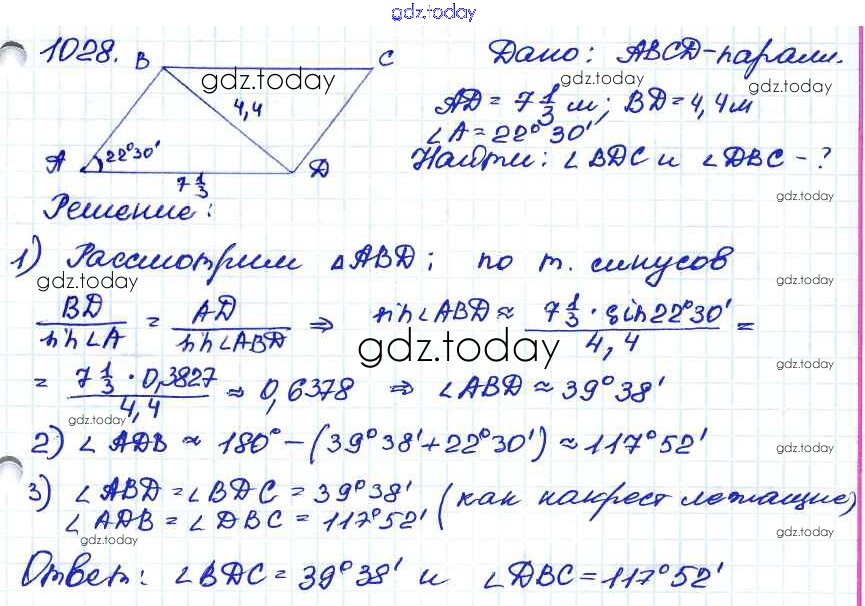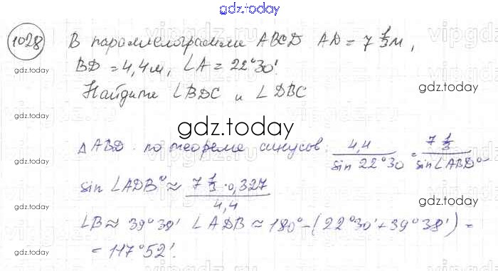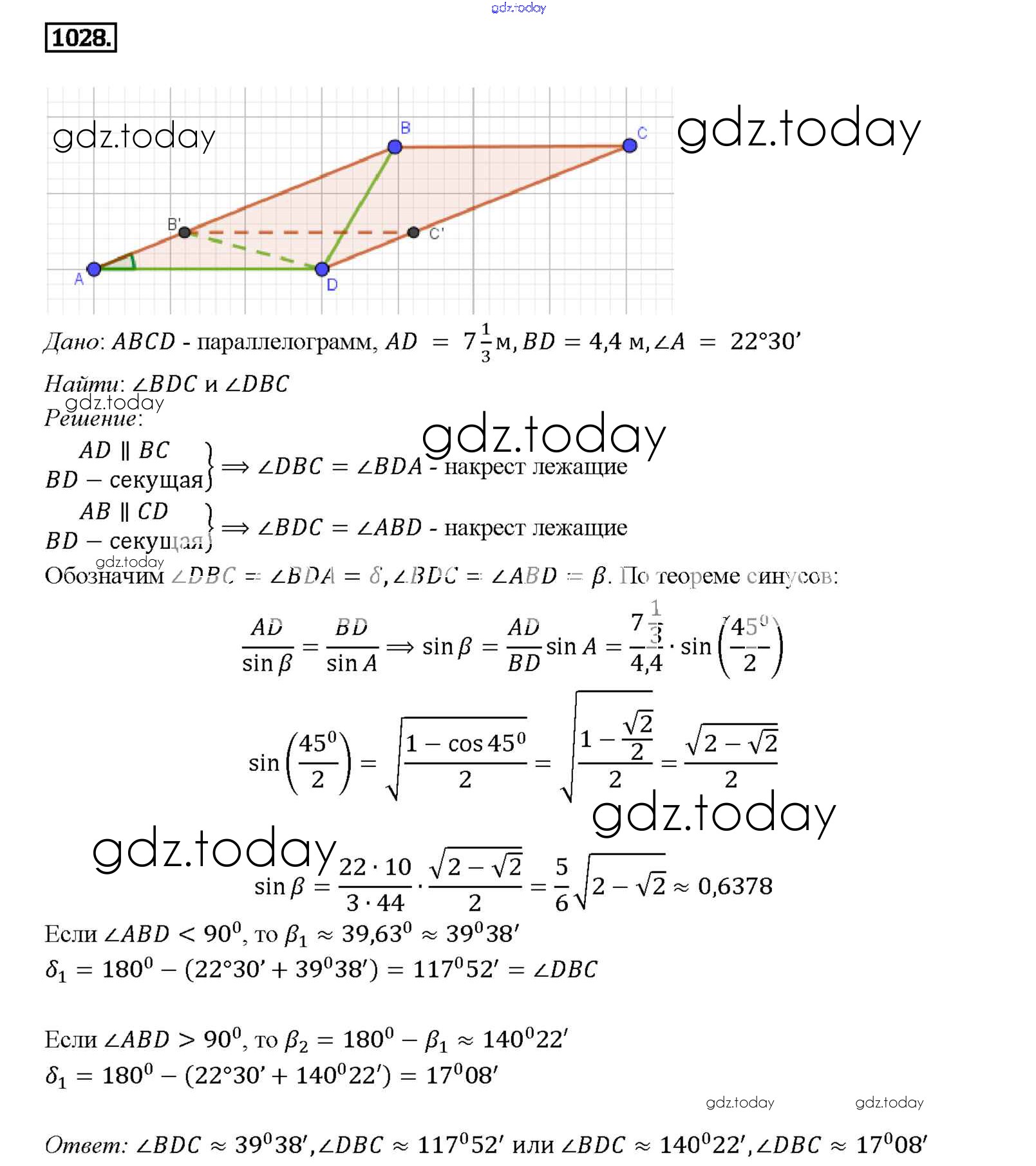 Ответы к Решение. Задачи 1028 Учебнику по Геометрии для 7-9 класса Атанасян, Бутузов Просвещение 2010