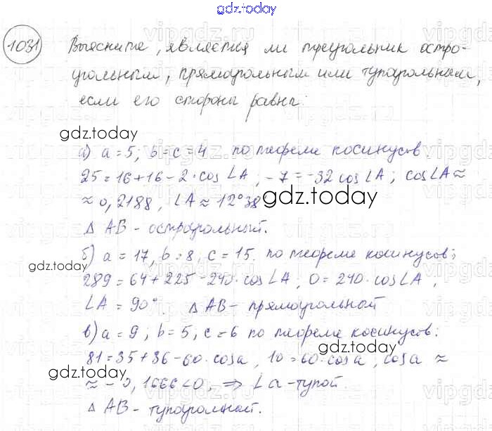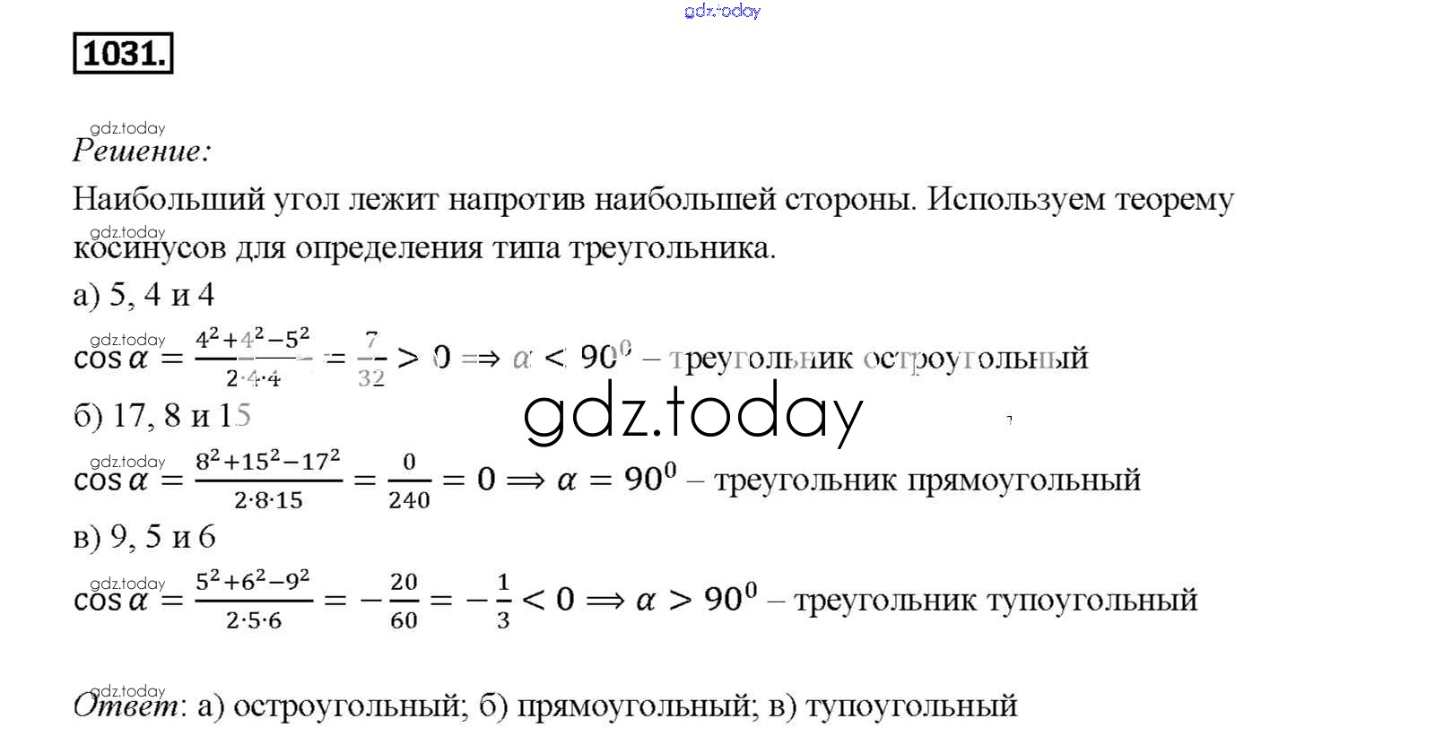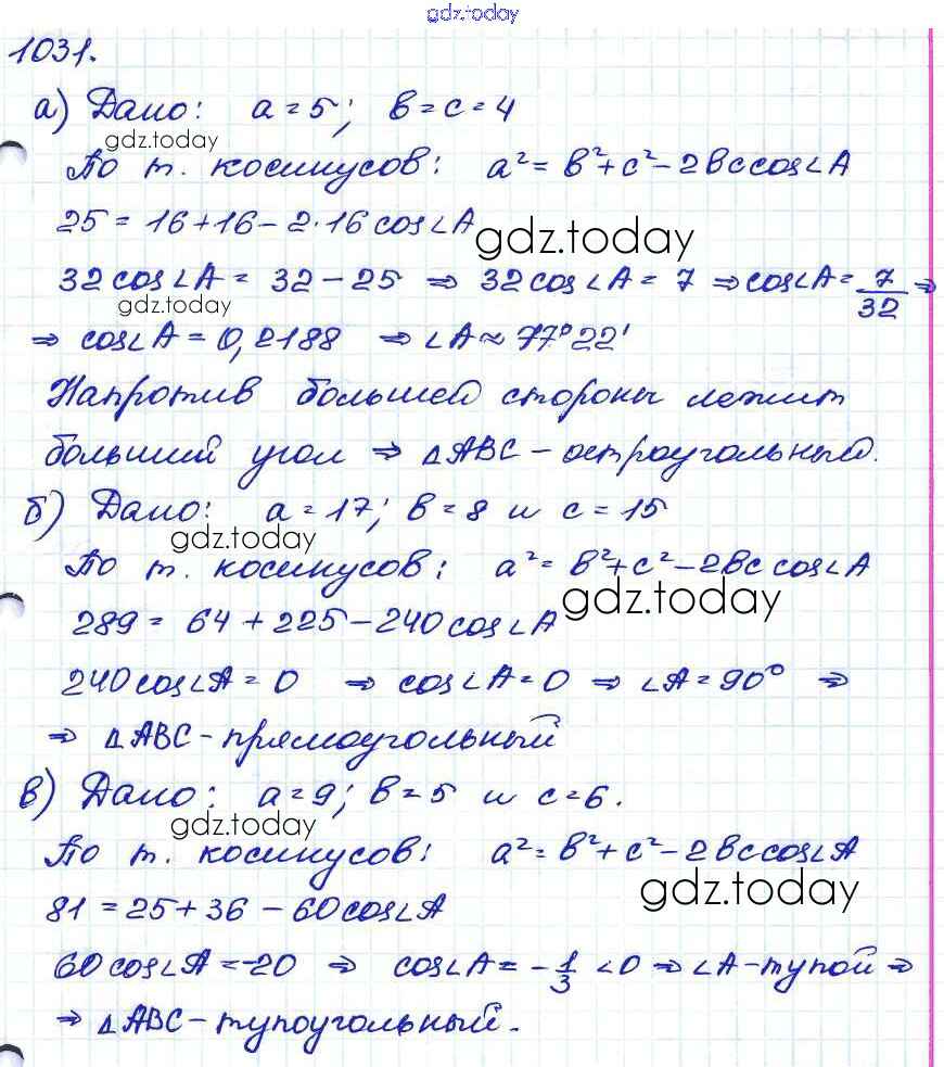 Ответы к Решение. Задачи 1031 Учебнику по Геометрии для 7-9 класса Атанасян, Бутузов Просвещение 2010