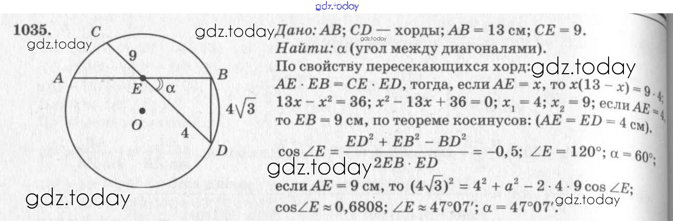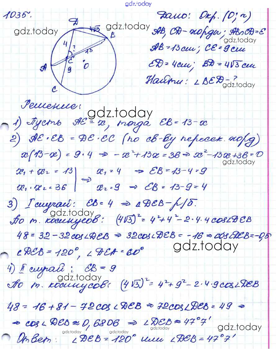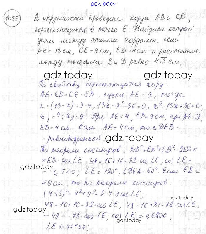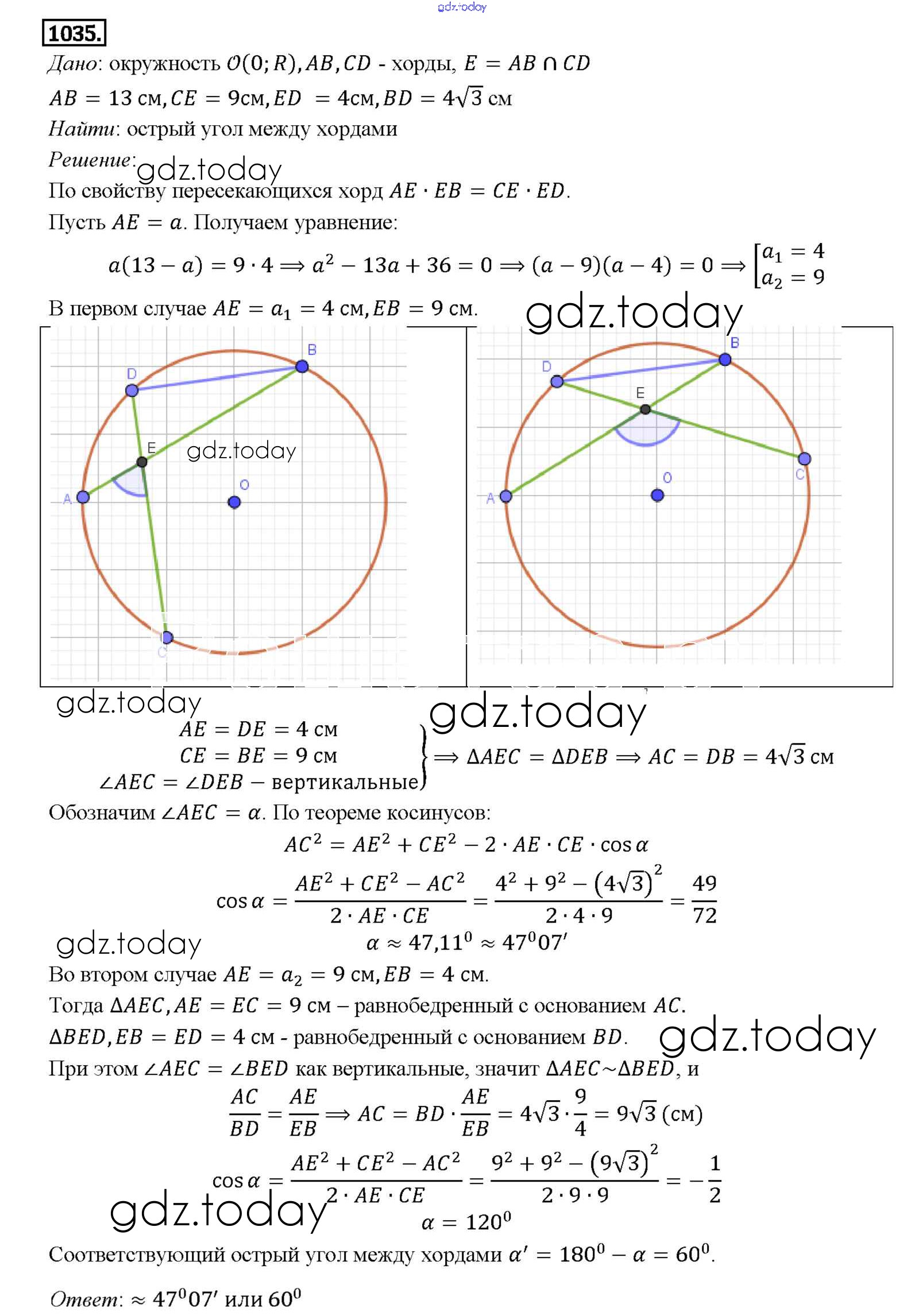 Ответы к Решение. Задачи 1035 Учебнику по Геометрии для 7-9 класса Атанасян, Бутузов Просвещение 2010