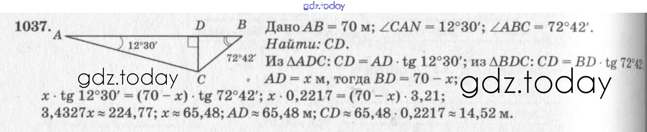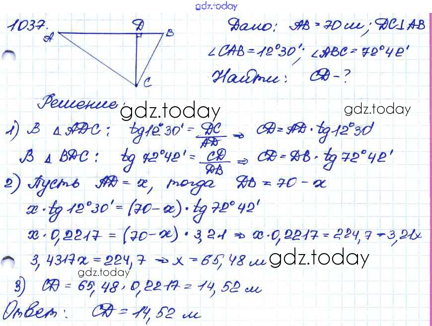 Ответы к Решение. Задачи 1037 Учебнику по Геометрии для 7-9 класса Атанасян, Бутузов Просвещение 2010