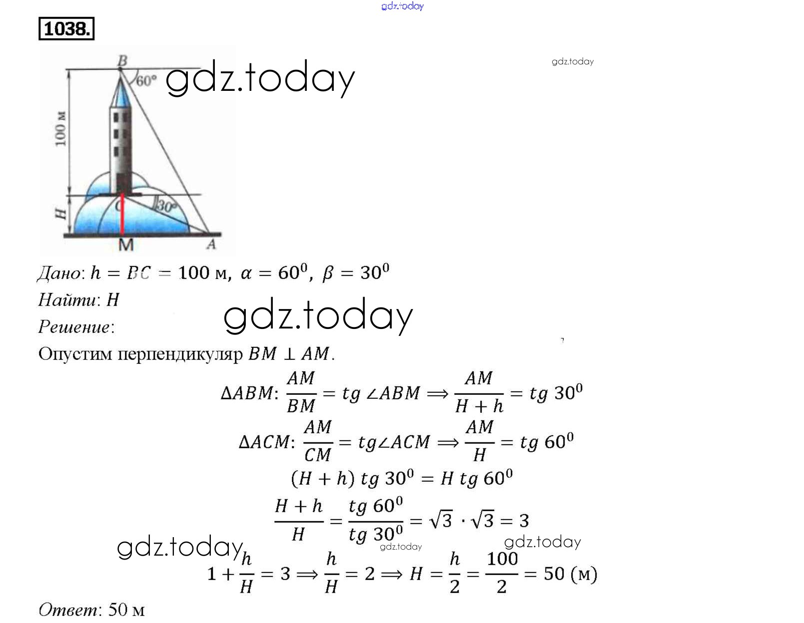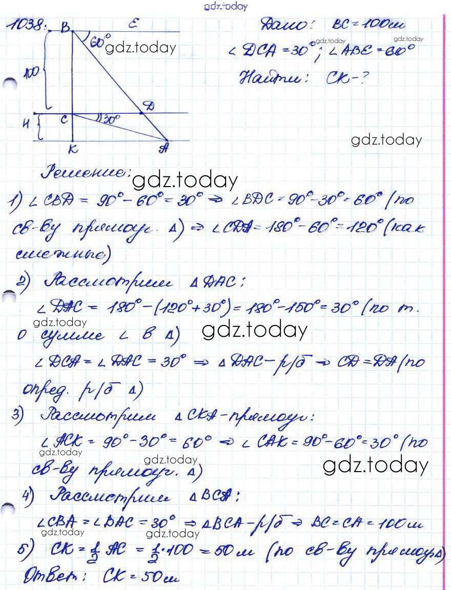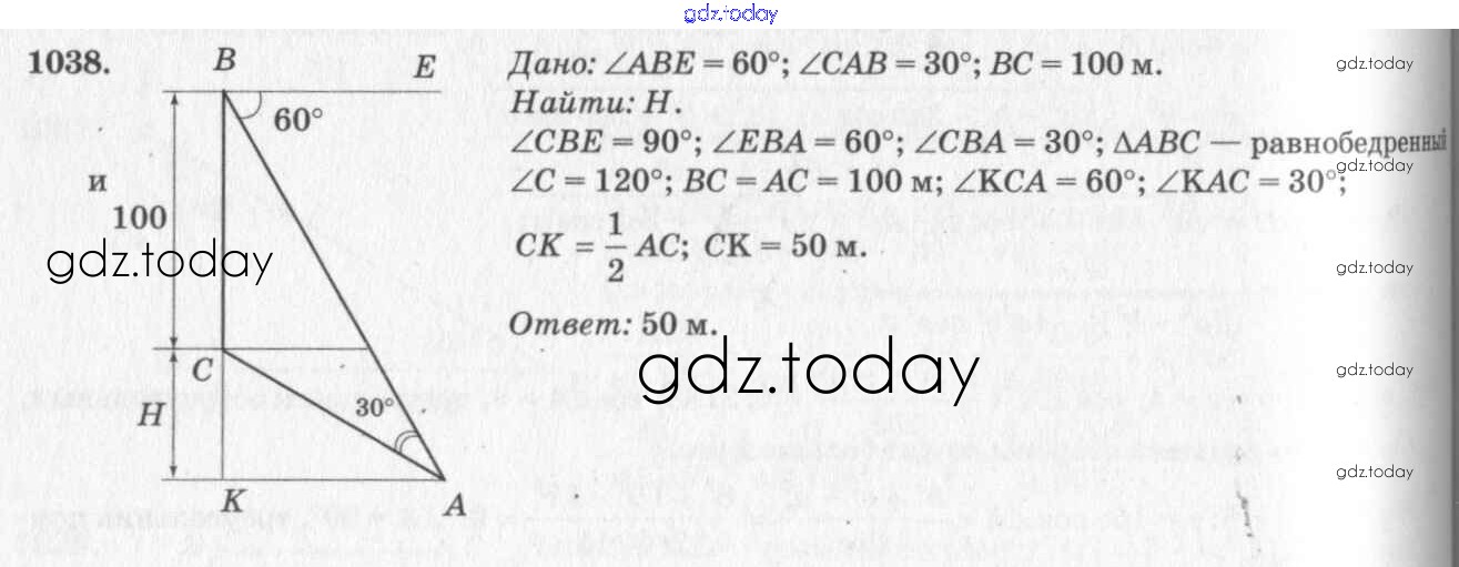 Ответы к Решение. Задачи 1038 Учебнику по Геометрии для 7-9 класса Атанасян, Бутузов Просвещение 2010