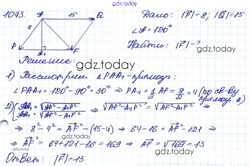 Ответы к Решение. Задачи 1043 Учебнику по Геометрии для 7-9 класса Атанасян, Бутузов Просвещение 2010